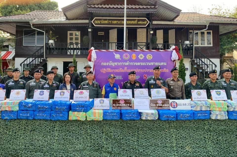 ทางเจ้าหน้าที่จึงประสานฝ่ายปกครอง อ.แม่ฟ้าหลวง และทหาร ฉก.ทัพเจ้าตาก กองกำลังผาเมือง ร่วมทำการตรวจสอบพบของกลางกระสอบฟาง จำนวน 50 ใบ ภายในพบเป็น ยาไอซ์ น้ำหนักกระสอบละประมาณ 14 กิโลกรัม รวมของกลางไอซ์ทั้งหมดน้ำหนักรวมประมาณ 700 กิโลกรัม จึงได้นำของกลางไปตรวจสอบที่ ร้อย ตชด.327 อ.แม่จัน จากนั้นทำการบันทึกตรวจยึดส่งพนักงานสอบสวน สภ.แม่ฟ้าหลวง เพื่อดำเนินการกฎหมายต่อไป