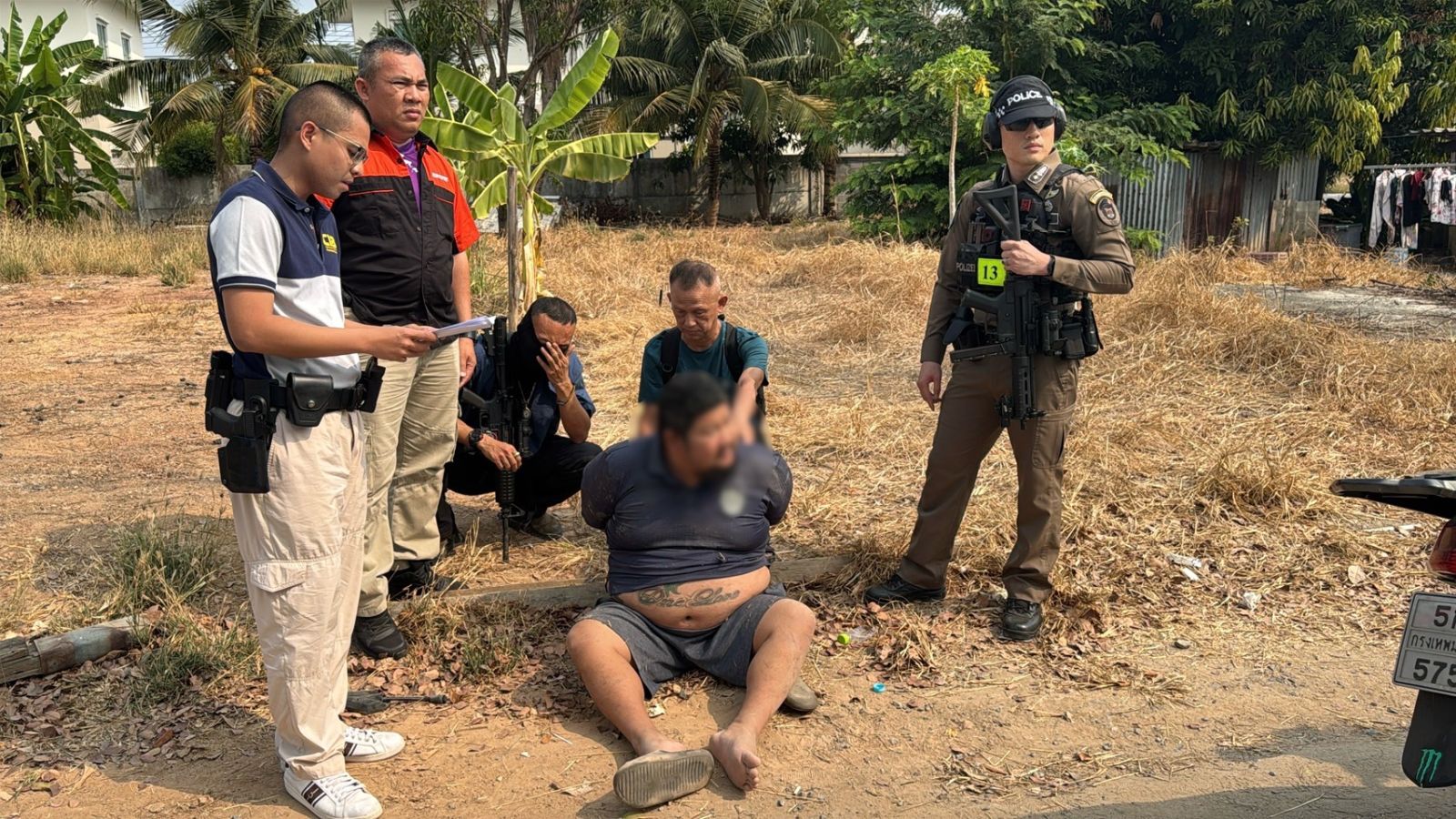 สถานที่จับกุม บริเวณริมถนนสาธารณะ ม.1 ต.คูคต อ.ลำลูกกา จ.ปทุมธานี เมื่อวันที่ 19 กุมภาพันธ์ 2568 เวลา 10.10 น.