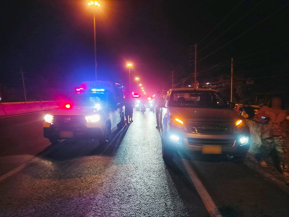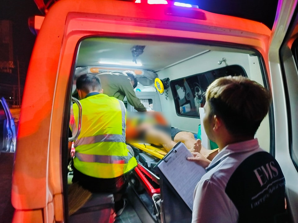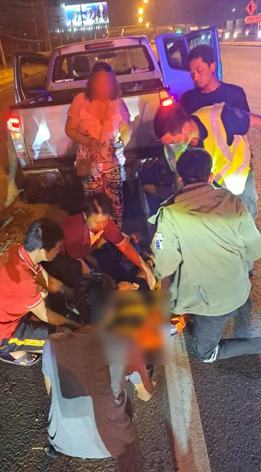 ที่เกิดเหตุ พบรถยนต์กระบะ อีซูซุ สีเทา ป้ายทะเบียน กาฬสินธุ์ จอดอยู่ไหล่ทางในช่องทางหลัก พบว่ามีผู้ป่วยเป็นชาย 1 ราย อายุประมาณ 55 - 60 ปี มีอาการ ชักเกร็งและวูบ แขนขาอ่อนแรง มีอาการเบลอ ถามตอบไม่รู้เรื่อง