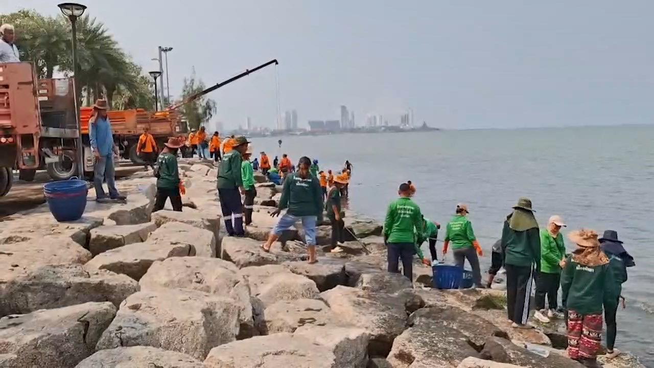 เมืองพัทยาระดมเจ้าหน้าที่กว่า 200 คน พร้อมเครื่องมือและรถบรรทุก ลงพื้นที่ หาดกระทิงลาย จัดเก็บสาหร่ายทะเลที่ถูกคลื่นพัดขึ้นมาเกยตื้นเป็นจำนวนมาก ลดปัญหากลิ่นเหม็นและผลกระทบต่อประชาชนและนักท่องเที่ยว