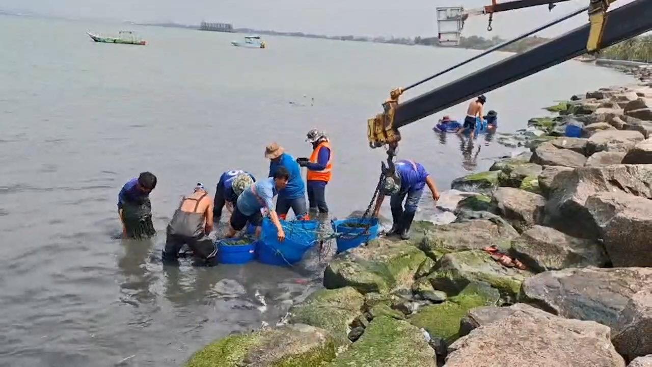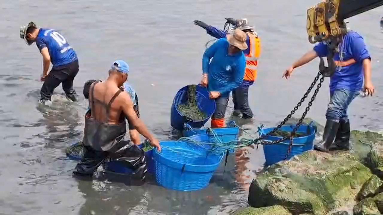 เจ้าหน้าที่ได้ช่วยกัน จัดเก็บสาหร่ายทะเลและพืชทะเลที่เกยตื้นออกจากหาด อย่างต่อเนื่องเป็นวันที่ 10 แล้ว