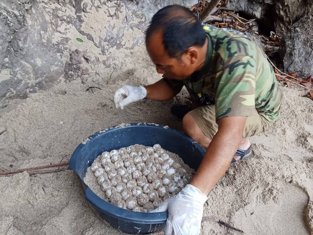 นายอุกฤษฏ์ ดีทองอ่อน หัวหน้าอุทยานแห่งชาติหมู่เกาะชุมพร เปิดเผยว่า เจ้าหน้าที่อุทยานแห่งชาติหมู่เกาะชุมพร รายงานว่าเมื่อวันที่ 21 กุมภาพันธ์ 2568 ได้พบรังไข่เต่ากระ (Hawksbill sea turtle) สัตว์ทะเลใกล้สูญพันธุ์ถึง 2 รัง รวม 338 ฟอง โดยพบรังแรกบริเวณชายหาดด้านทิศตะวันตกของเกาะกุลา ต.ด่านสวี อ.สวี มีไข่เต่าจำนวน 173 ฟอง และรังที่สองพบที่ชายหาดทิศตะวันตกเฉียงเหนือของเกาะทองหลาง ต.หาดทรายรี อ.เมืองชุมพร มีไข่เต่าอีก 165 ฟอง การพบไข่เต่ากระจำนวนมากถึงสองรังในครั้งนี้ นับเป็นนิมิตหมายที่ดีอย่างยิ่ง เพราะเต่ากระเป็นเต่าทะเลที่พบได้ยากในน่านน้ำไทย ล่าสุดเจ้าหน้าที่เราได้ย้ายไข่เต่าทั้งหมดไปยังบ่อฟักที่ปลอดภัยทันที เพื่อป้องกันการถูกทำลายจากสัตว์ธรรมชาติ โดยเฉพาะตัวเงินตัวทองที่มักคุ้ยเขี่ยทำลายไข่ โดยทางอุทยานฯ ได้จัดเจ้าหน้าที่ผลัดเปลี่ยนหมุนเวียนดูแลไข่เต่าตลอด 24 ชั่วโมง พร้อมติดตั้งระบบรักษาความปลอดภัยเพิ่มเติม เพื่อให้มั่นใจว่าไข่เต่าทุกฟองจะได้ฟักออกเป็นตัวอย่างปลอดภัย