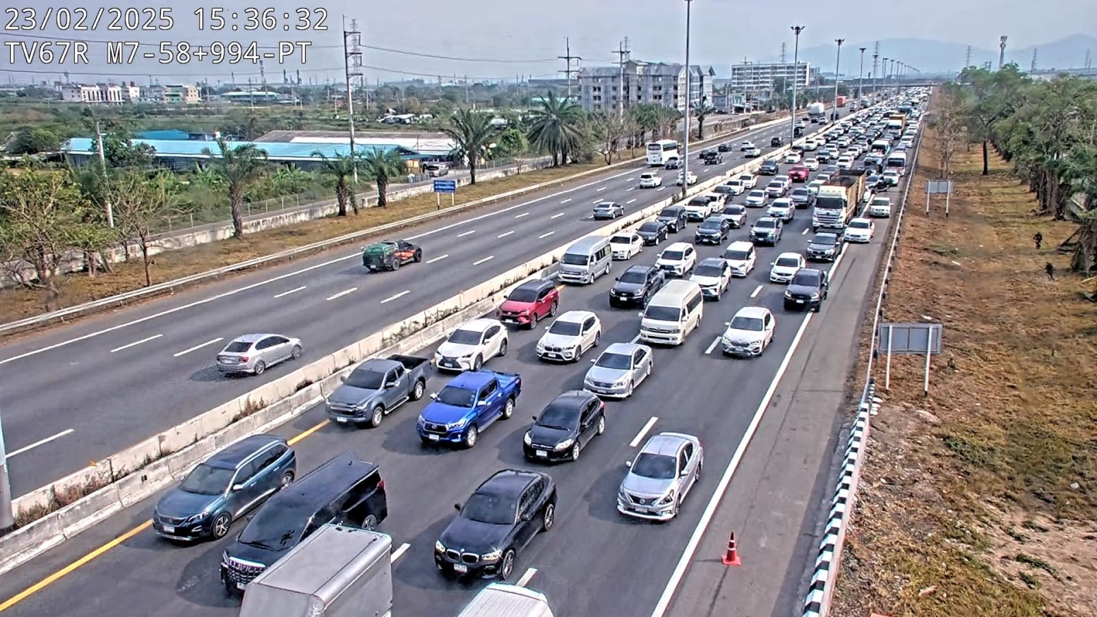 23 กุมภาพันธ์ 2568 เส้นทางหลวงหมายเลข 7 มอเตอร์เวย์ (กรุงเทพ-บ้านฉาง) ขาเข้ากรุงเทพ ล่าสุดเมื่อเวลาประมาณ 15.00 น. บริเวณกม.57+100 (ช่วงพนัสนิคม-สะพานแม่น้ำบางปะกง) เกิดอุบัติเหตุรถยนต์ชนกัน 3 คัน ขวาง 2 เลนขวาสุด รถเสียหายเยอะ กรณีดังกล่าวจนท.ประสานรถมาดำเนินการเคลื่อนย้าย โดยล่าสุด กำลังนำขึ้นรถสไลด์ การจราจรในเส้นทางขาเข้ากรุงเทพรถติดสะสมยาวหนาแน่น ท้ายแถวสะสมเลยต่างระดับดอนหัวฬ่อ หรือเลยมอเตอร์เวย์/พนัสนิคมไปแล้ว