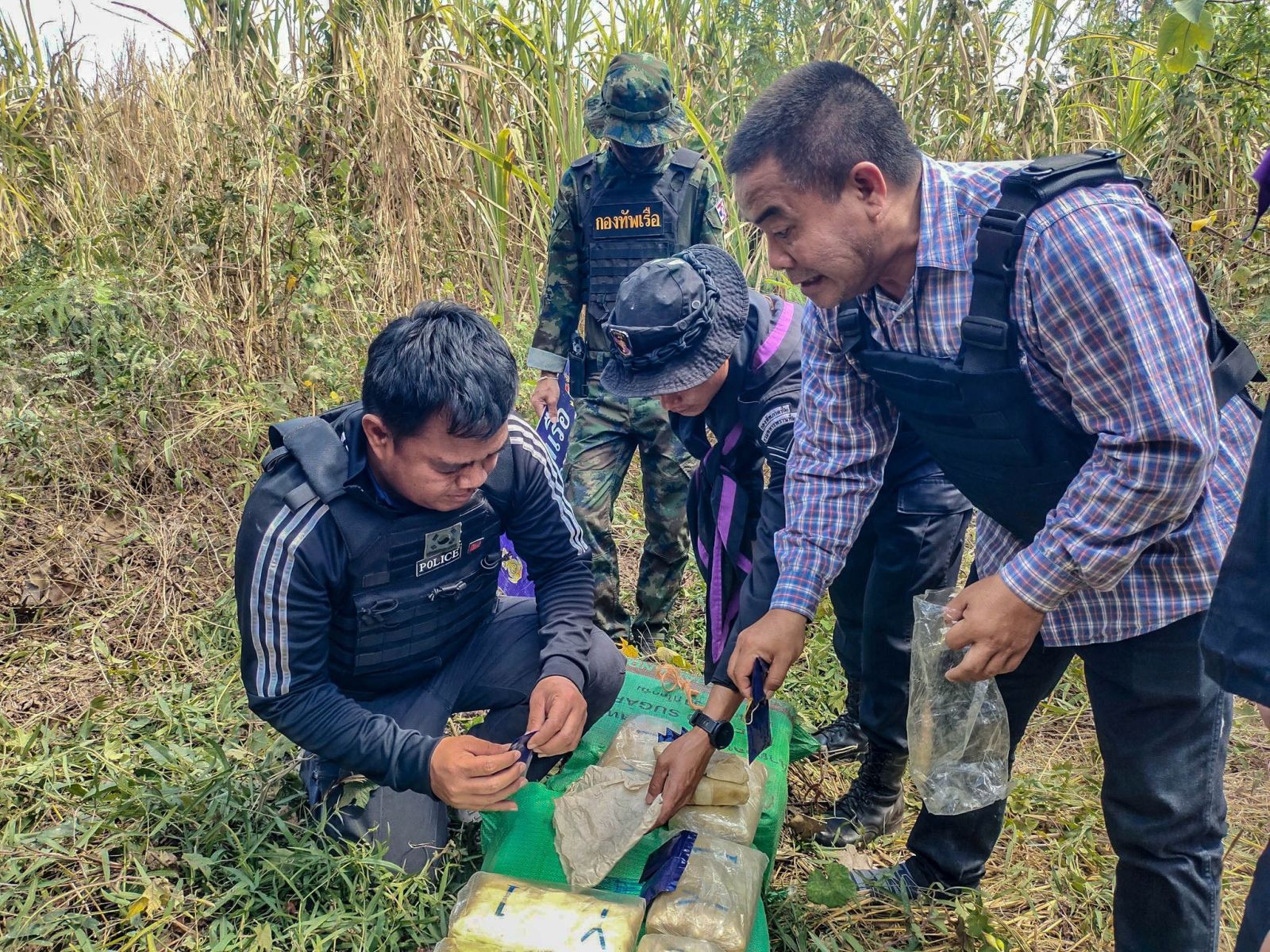 ทางเจ้าหน้าที่ได้มีการวางกำลังดักซุ่มใกล้กับจุดบริเวณดังกล่าว จนกระทั่งช่วงเวลา 05.00 ถึง 08.00 น. ได้มีเรือหางยาวติดเครื่องยนต์แล่นมาจากฝั่ง สปป.ลาว พอใกล้จะถึงฝั่งประเทศไทย คนขับเรือได้ดับเครื่องยนต์เรือปล่อยเรือไหลเข้าฝั่ง ก่อนจะมีชาย 2 คนที่นั่งมาในเรือ ได้แบกกระสอบปุ๋ยที่วางในเรือคนละใบ แล้วเดินขึ้นมาบนฝั่ง ส่วนคนขับรถนั่งรออยู่ที่เรือ