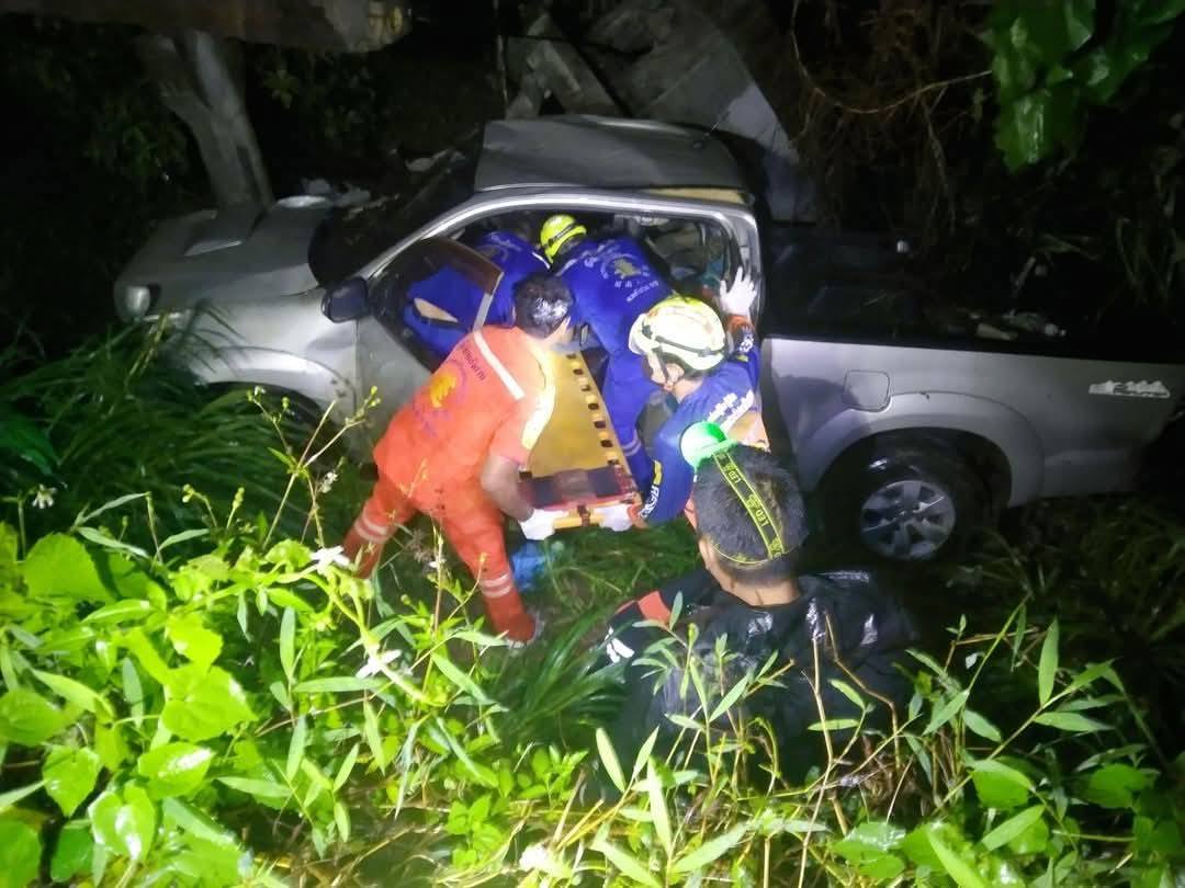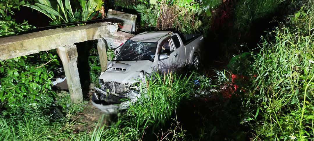 รถกระบะเสียหลักพุ่งลงชนเสาปูนข้างทาง ริมถนนสายเอเชีย (ทล.41) มีผู้เสียชีวิต 2 ราย จ.ชุมพร