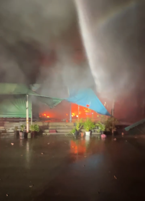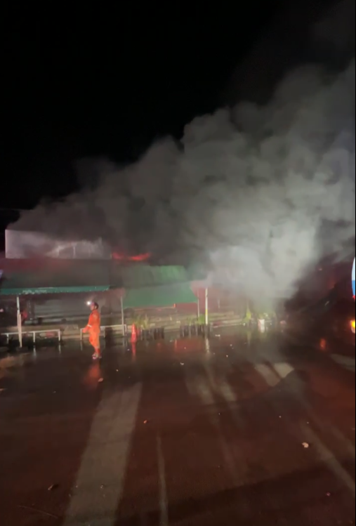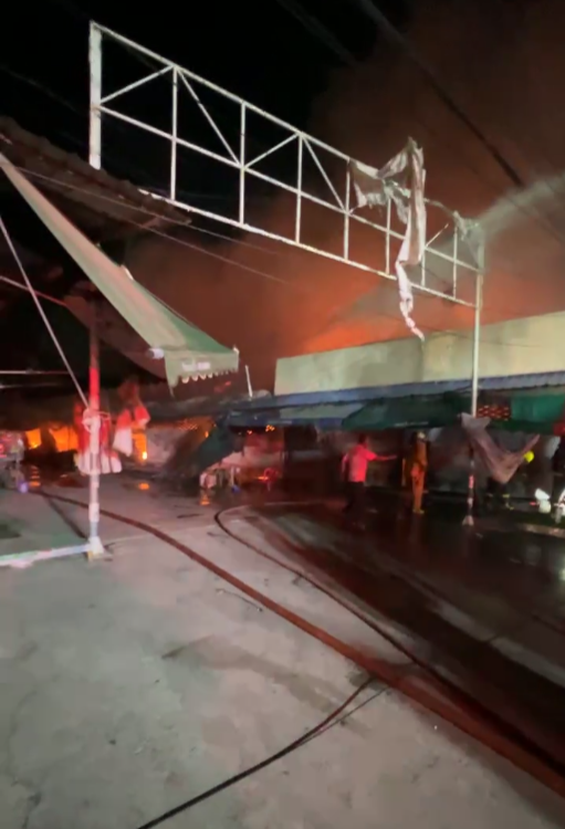 ไฟไหม้ร้านขายเสื้อผ้า - รองเท้ามือสอง โซนหน้าตลาดโรงเกลือ อรัญประเทศ เจ้าหน้าหน้าที่พร้อมรถดับเพลิงระดมฉีดน้ำสกัดเพลิง จ.สระแก้ว