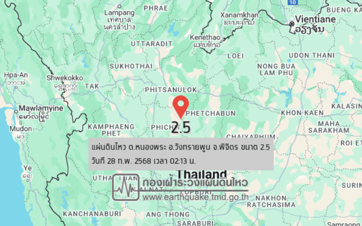 แผ่นดินไหว ขนาด 2.5 ที่วังทรายพูน จังหวัดพิจิตร