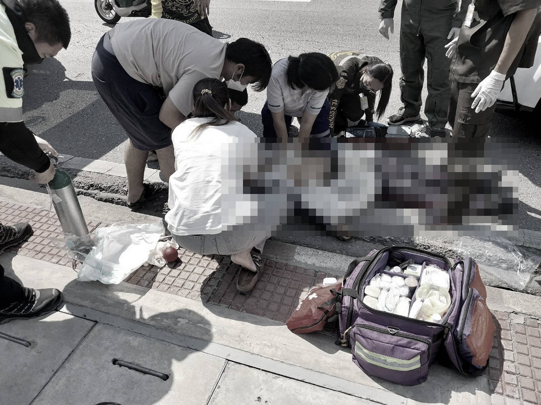 รถจักรยานยนต์พลิกคว่ำริมถนนบรมราชชนนี ผู้ขับขี่บาดเจ็บสาหัส กู้ภัยช่วยเหลือทำ CPR แต่ไม่เป็นผล