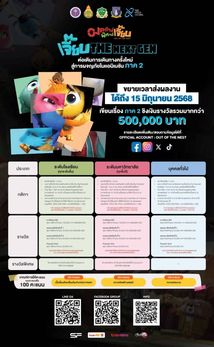 การผจญภัยในแพะหนุ่มและเหล่าเจี๊ยบทั้ง 7 กลับมาสร้างความสนุกสนานให้กับผู้ที่พลาดโอกาสชมในโรงภาพยนตร์แล้วสำหรับ แอนิเมชันฝีมือคนไทย “Out of the Nest องครักษ์พิทักษ์เจี๊ยบ” โดย T&B Media Global (ประเทศไทย) ได้นำมาให้ชมทางแพลตฟอร์มชั้นนำ NetFlix เริ่มดีเดย์ 1 มีนาคม ศกนี้ พร้อมขยายเวลารับสมัครผลงาน การร่วมเขียนพล็อตเรื่องภาค 2 ของภาพยนตร์แอนิเมชัน “องครักษ์พิทักษ์เจี๊ยบ (Out Of The Nest)” ในโครงการ “เจี๊ยบ The Next Gen” ซึ่งจะเป็นเวทีให้นักเรียน นักศึกษา และบุคคลทั่วไปได้แสดงผลงาน ชิงเงินรางวัลรวมกว่า 500,000บาท โดยส่งผลงานได้ตั้งแต่บัดนี้ถึง 15 มิถุนายน ศกนี้