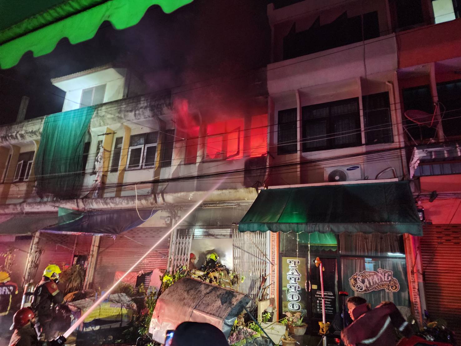 เวลา 01.14 น. เจ้าหน้าที่สถานีดับเพลิงและกู้ภัยหนองแขม ถึงที่เกิดเหตุ ลักษณะที่เกิดเหตุเป็นอาคารพาณิชย์ 3 ชั้น เพลิงอยู่ระหว่างการลุกไหม้บริเวณชั้นที่ 1 เจ้าหน้าที่อยู่ระหว่างดำเนินการ