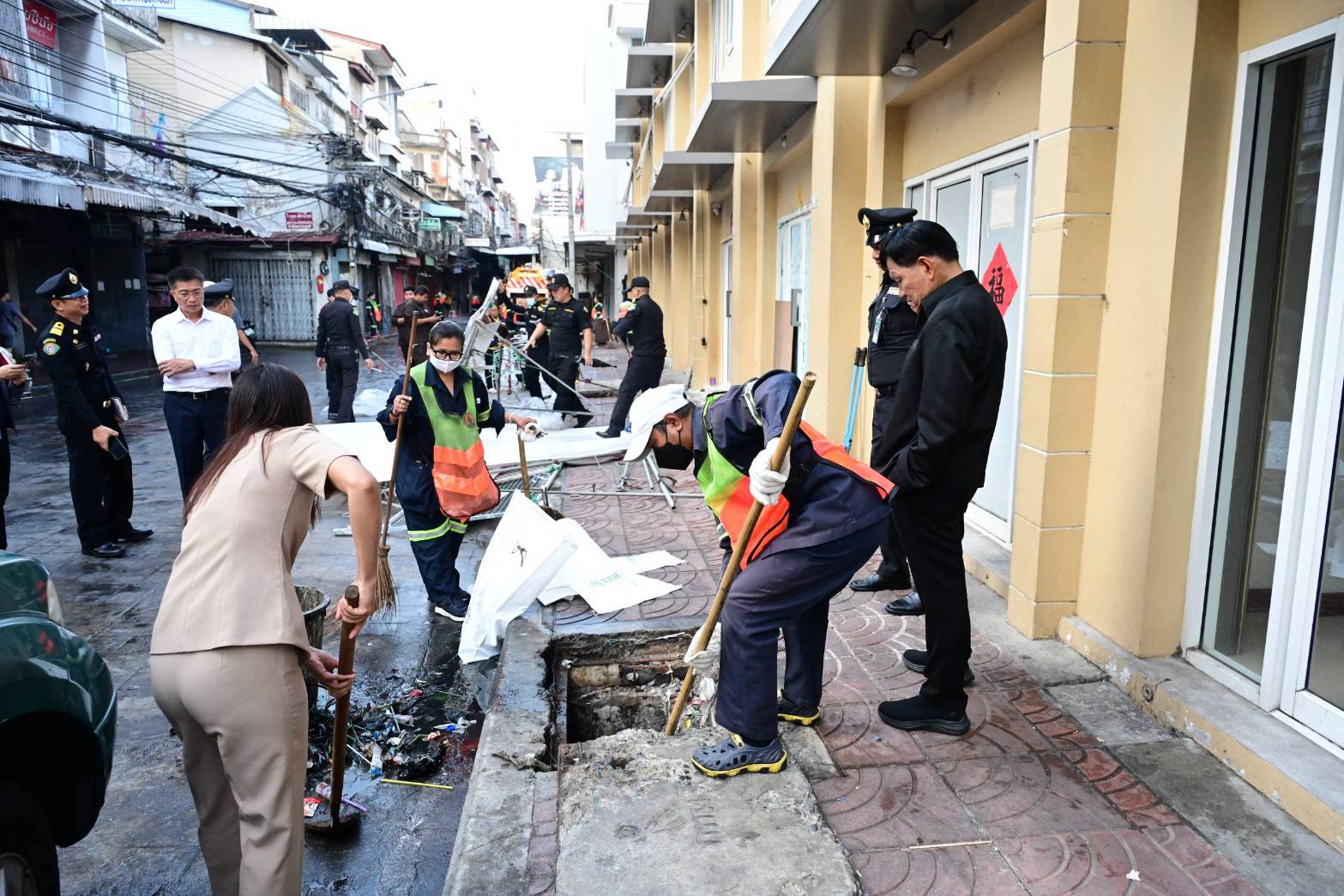 รองผู้ว่าฯ จักกพันธุ์ กล่าวต่อไปว่า ที่ผ่านมาเขตฯ ได้ประชาสัมพันธ์ให้ผู้ประกอบการร้านค้ารับทราบ และให้ดำเนินการเคลื่อนย้ายสิ่งของ รื้อถอนโครงสร้างหลังคาและแผงค้าที่ต่อเติมออกจากพื้นที่ทางเท้า จากการลงพื้นที่วันนี้พบว่ายังมีผู้ประกอบการร้านค้าบางรายตั้งวางสิ่งของทิ้งไว้ ไม่จัดเก็บหลังเลิกทำการค้า ผู้ประกอบการร้านค้าบางรายยังไม่รื้อถอนโครงสร้างหลังคาและแผงค้าที่ต่อเติมออกไป เขตฯ จึงดำเนินรื้อย้ายและจัดเก็บสิ่งของที่ตั้งวางกีดขวางทางบนพื้นที่ทางเท้าออกไป เพื่อให้การปฏิบัติงานล้างทำความสะอาดเป็นไปด้วยความเรียบร้อย