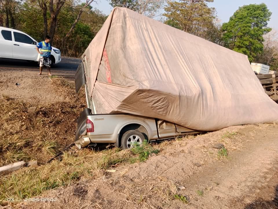 วันที่ 3 มีนาคม 2568 รับแจ้งจาก กู้ภัยสว่างเมตตาธรรมสถาน นครราชสีมา มีอุบัติเหตุรถบรรทุก 2 คันชนกันแล้วล้มทับรถกระบะ มีผู้บาดเจ็บติดค้างภายในยานพาหนะ บนถนนสายโชคชัย - เดชอุดม ช่วงหลัก กม.ที่ 82 - 83 ฝั่งขาเข้า อ.หนองบุญมาก จ.นครราชสีมา