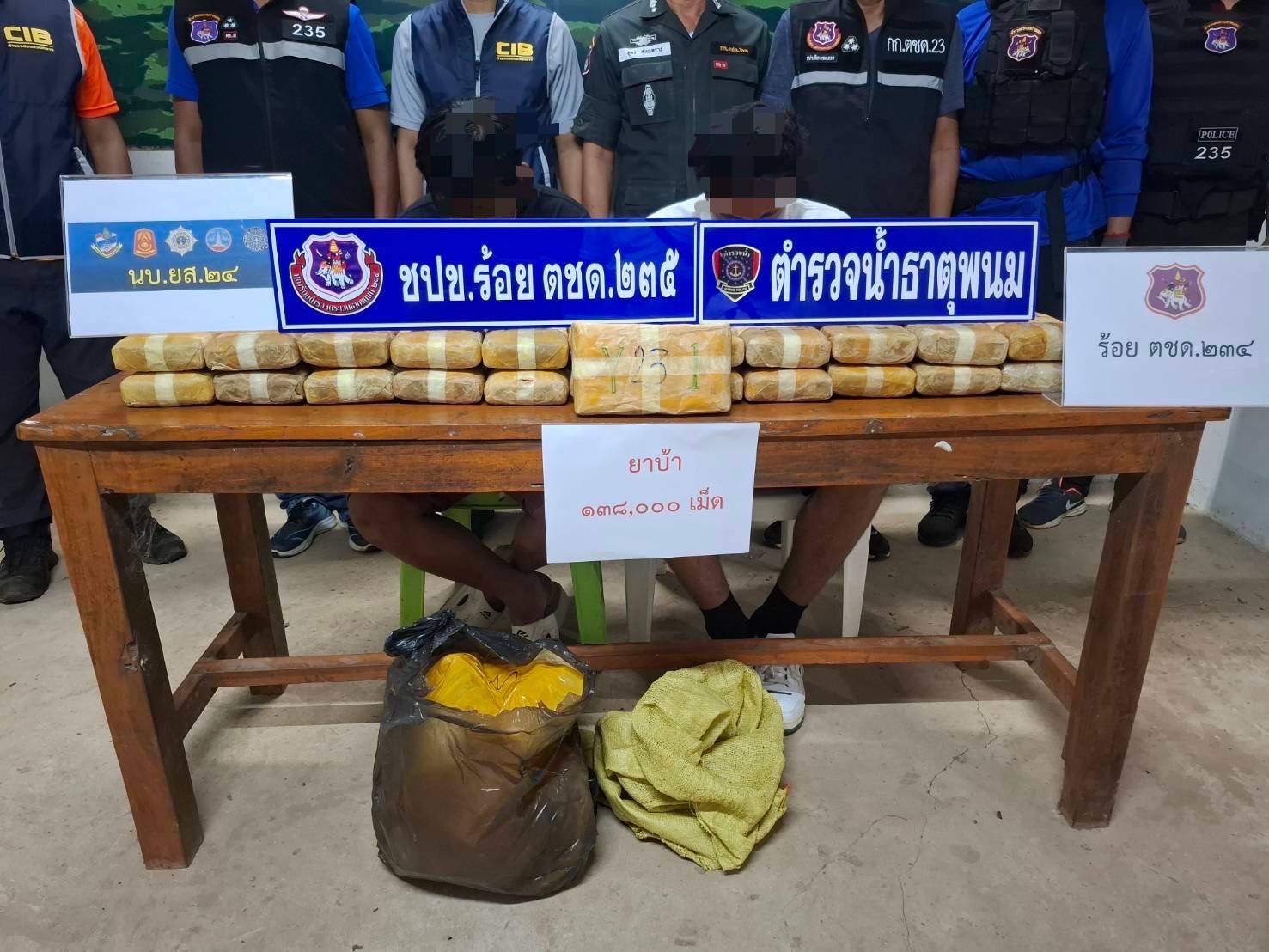 กระทั่งเวลา 23.40 น. เจ้าหน้าที่ได้ตรวจพบรถยนต์เก๋งต้องสงสัย จำนวน 1 คัน วิ่งเข้ามาเพื่อขนย้ายยาเสพติด จึงแสดงตัวเข้าเข้าจับกุม เมื่อผู้ต้องสงสัยเห็นว่าเป็นเจ้าหน้าที่ จึงตกใจรีบขับรถยนต์เพื่อหลบหนี ไปตามเส้นทางบริเวณแยกไฟแดงบ้านโคกสูง หมู่ที่ 3 ต.บางทรายใหญ่ อ.เมืองมุกดาหาร จ.มุกดาหาร เจ้าหน้าที่จึงขับรถยนต์เข้าสกัดไว้ได้ และจับกุม ผู้ต้องหาจำนวน ชาย 2 ราย จากการตรวจสอบภายในรถยนต์ พบยาเสพติดให้โทษประเภท 1 (ยาบ้า) 138,000 เม็ด ทางหน่วยจึงได้ประสานหน่วยงานความมั่นคงในพื้นที่ร่วมในการจับกุมและตรวจยึดของกลาง โดยนำของกลาง มาทำบันทึกการตรวจยึดที่ บก.ร้อย ตชด.235 อ.ธาตุพนม จ.นครพนมเพื่อตรวจนับและขยายผล ดำเนินการตามกฎหมายต่อไป
