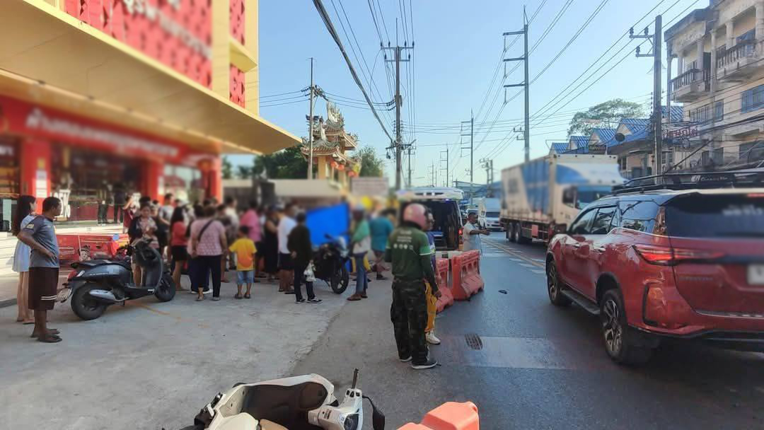 เด็กชายวัย 14 ปีขี่รถจักรยานยนต์เฉี่ยวชนกับรถเทรเลอร์แล้วโดนทับซ้ำ เสียชีวิตกลางถนน จ.ชลบุรี