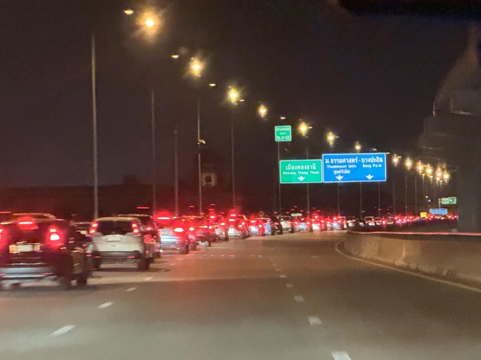 ตอนนี้ทางเข้า ฝั่งที่ลงมาจากทางด่วนเมืองทอง หรือ ปากทางเข้าเมืองทอง ถนนแจ้งวัฒนะ การจราจรหนาแน่น