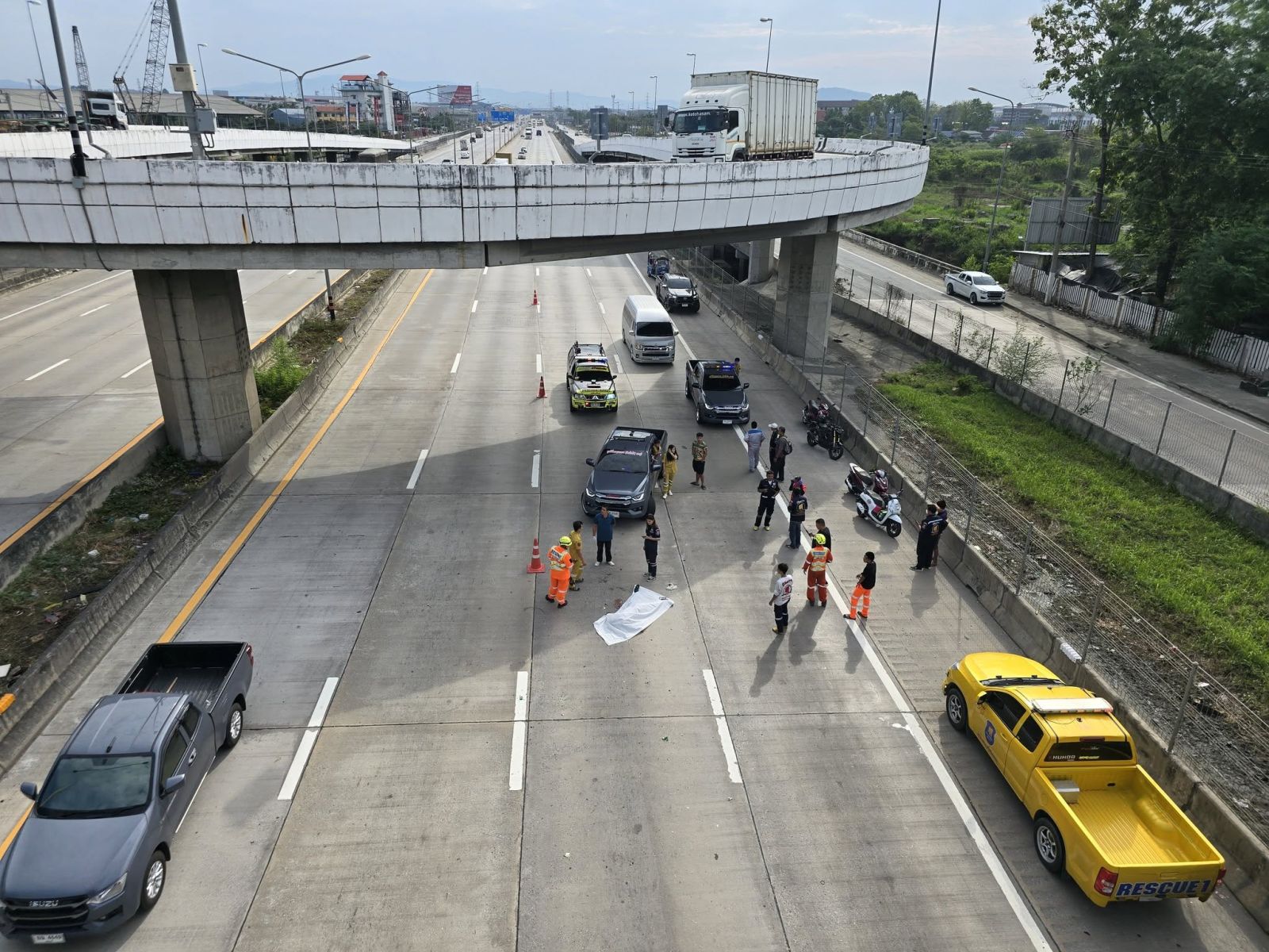 อุบัติเหตุ! มอเตอร์เวย์ (ทล.7) ตอนที่ 3 มุ่งหน้าเข้าแหลมฉบัง ช่วง กม.2+600 ในพื้นที่ต.สุรศักดิ์ อ.ศรีราชา จ.ชลบุรี รับแจ้งรถจักรยานยนต์ขึ้นไปใช้สะพานกลับรถ ก่อนเฉี่ยวชนขอบทาง ส่งผลให้ผู้ขับขี่ร่างกระเด็นลงมาพื้นราบ เสียชีวิตเป็นหญิง 1 ราย ยังกีดขวางเลนกลาง เจ้าหน้าที่กำลังเร่งดำเนินการ #รายงานจราจร #รถติด #อุบัติเหตุ #FM91