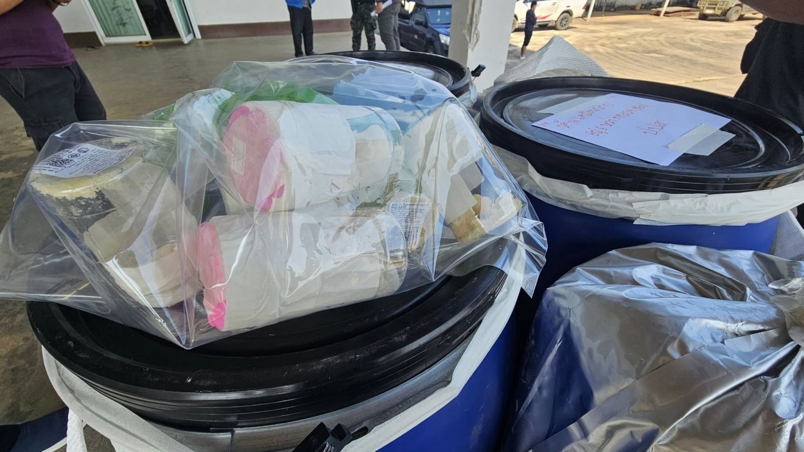 หลังจากได้สืบทราบว่าได้มีบริษัทเอกชนชาวจีนฝากส่งวัตถุต้องสงสัยบรรจุในถุงกระสอบสีขาวขนาดใหญ่ 2 ใบ อ้างว่าเป็นเครื่องจักรจะนำไปส่งที่โรงโม่หินแห่งหนึ่งในรัฐฉาน ประเทศเมียนมา แต่ดูแล้วมีลักษณะต้องสงสัย จากการตรวจสอบไม่พบว่าเป็นเครื่องจักร แต่ในถังสีน้ำเงินถุงละ 3 ถัง รวมเป็น 6 ถัง แต่ละถังบรรจุผงสีขาวมีสีขุ่นและมีกลิ่นฉุน ซึ่งไม่ตรงกับที่แจ้งส่งออก
