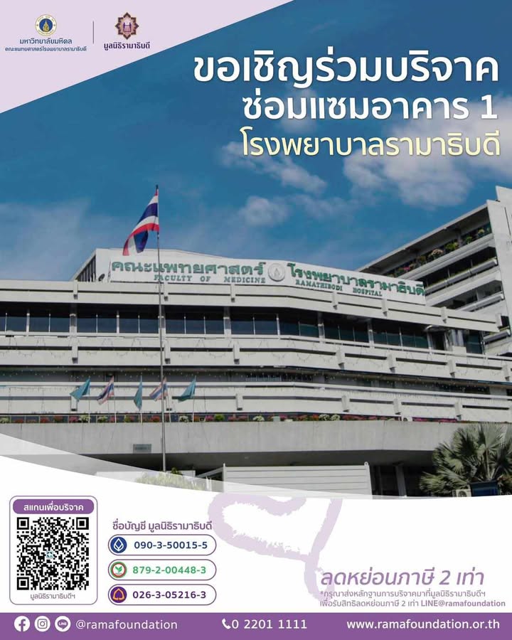 ขอเชิญร่วมบริจาคช่วยเหลือการซ่อมแซมอาคาร 1 โรงพยาบาลรามาธิบดี