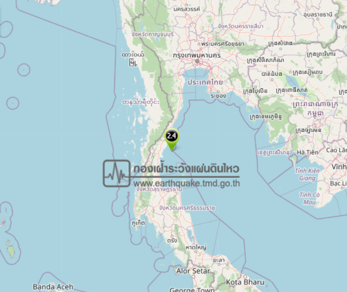 แผ่นดินไหว ขนาด 2.4 บริเวณอ่าวไทย ศูนย์กลางห่างจังหวัดชุมพร 45 กม.