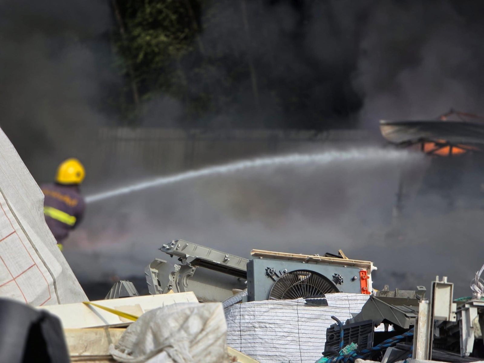 เกิดเหตุ "ไฟไหม้โกดังร้านรับซื้อของเก่า" ในพื้นที่ อ.ลำลูกกา จ.ปทุมธานี มีกลุ่มควันดำพวยพุ้งลอยขึ้นบนอากาศเต็มพื้นที่ เจ้าหน้าที่เร่งดับเพลิง ควบคุมเพลิงไม่ให้ลุกลาม