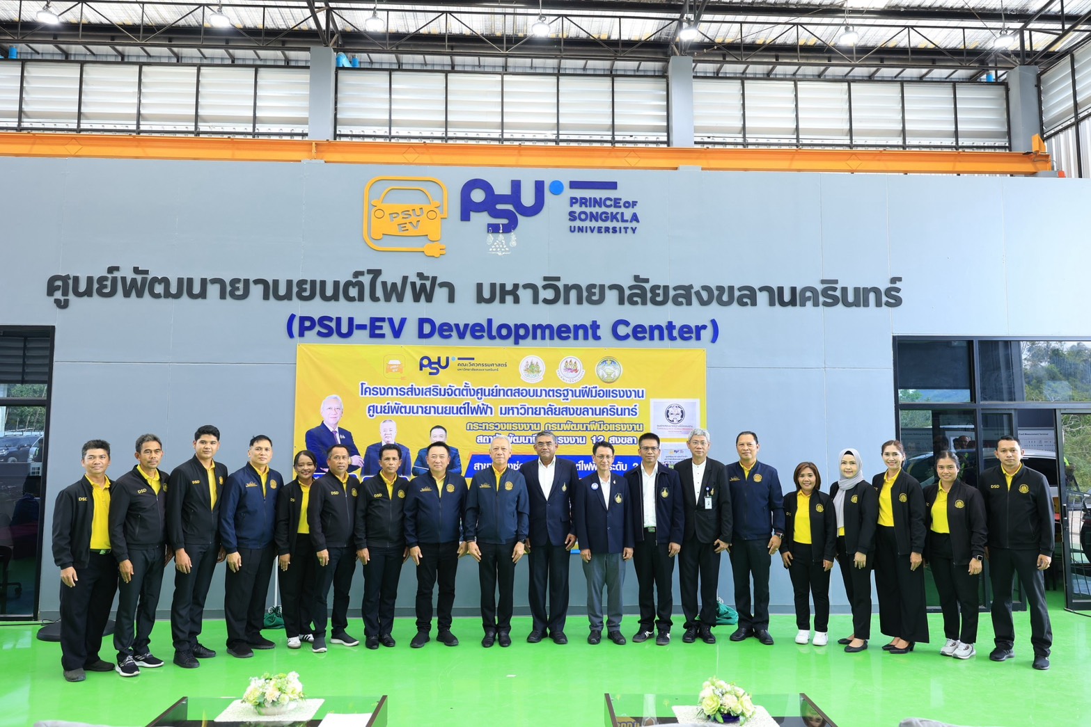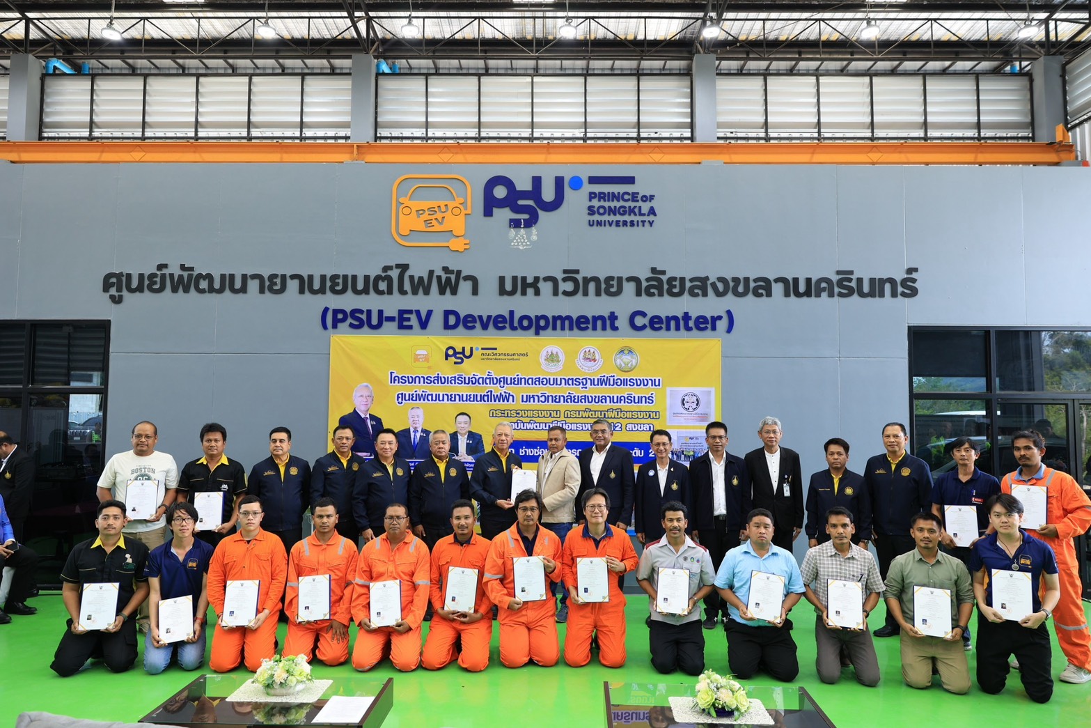 14 มีนาคม 2568 กระทรวงแรงงาน โดยกรมพัฒนาฝีมือแรงงาน เดินหน้าพัฒนากำลังแรงงานไทยรองรับอุตสาหกรรมยานยนต์ไฟฟ้า (EV) เปิด “ศูนย์ทดสอบมาตรฐานฝีมือแรงงาน” ด้าน ช่างซ่อมบำรุงรถยนต์ไฟฟ้า ระดับ 2 พร้อม มอบวุฒิบัตรรับรองมาตรฐานฝีมือแรงงาน ให้กับแรงงานที่ผ่านการทดสอบ เพื่อยกระดับศักยภาพแรงงานไทยให้พร้อมแข่งขันในระดับสากล โดย นายพิพัฒน์ รัชกิจประการ รัฐมนตรีว่าการกระทรวงแรงงาน พร้อมด้วย นาย จิรวัตร์ มณีโชติ รองผู้ว่าราชการจังหวัดสงขลา นายบุญสงค์ ทัพชัยยุทธ์ ปลัดกระทรวงแรงงาน นายเดชา พฤกษ์พัฒนรักษ์ อธิบดีกรมพัฒนาฝีมือแรงงาน ผศ.ดร.นิวัติ แก้วประดับ อธิการบดีมหาวิทยาลัยสงขลานครินทร์ คณะผู้บริหาร และหัวหน้าส่วนราชการ ร่วมงาน ณ ศูนย์พัฒนายานยนต์ไฟฟ้า มหาวิทยาลัยสงขลานครินทร์ จังหวัดสงขลา