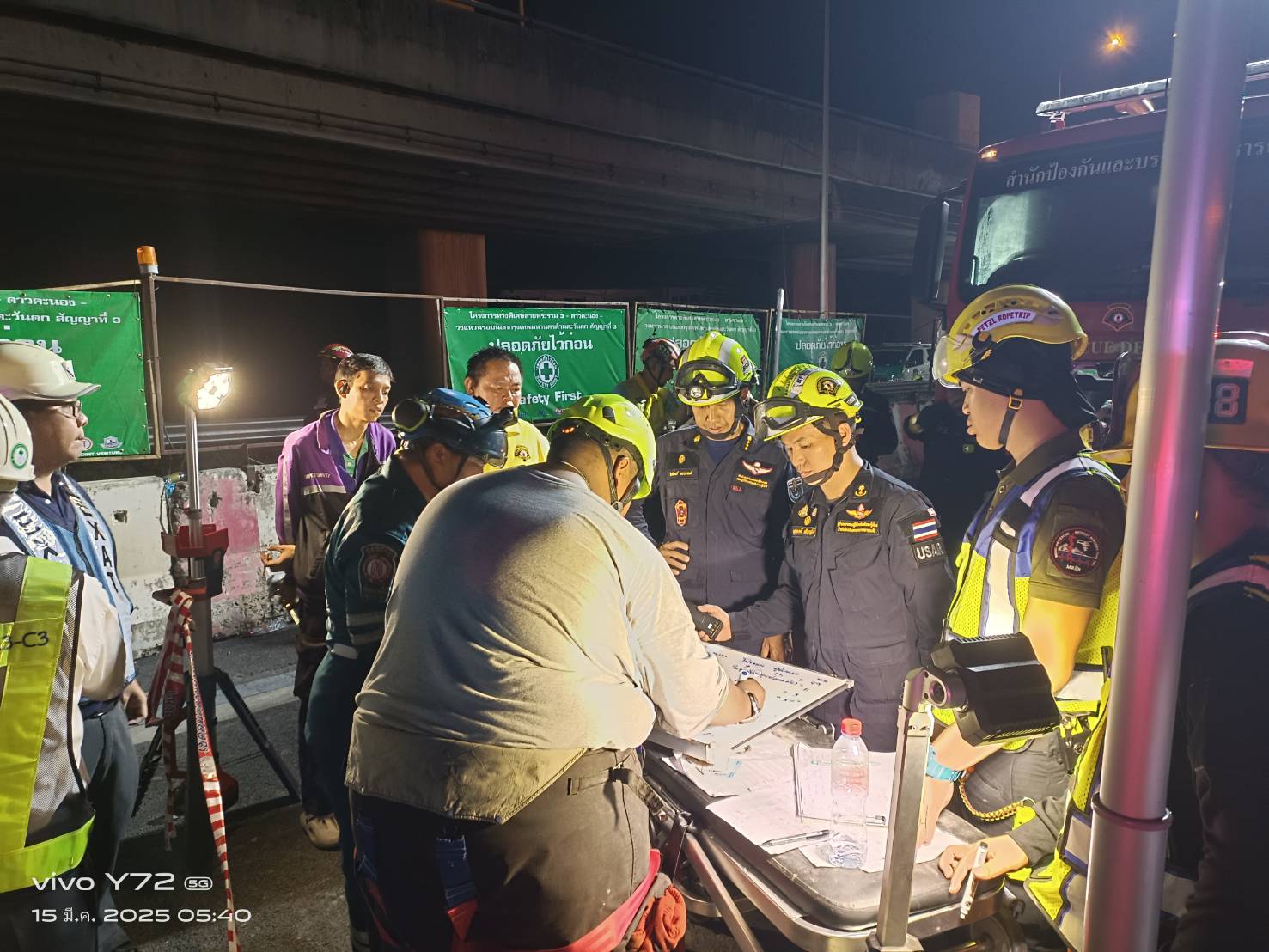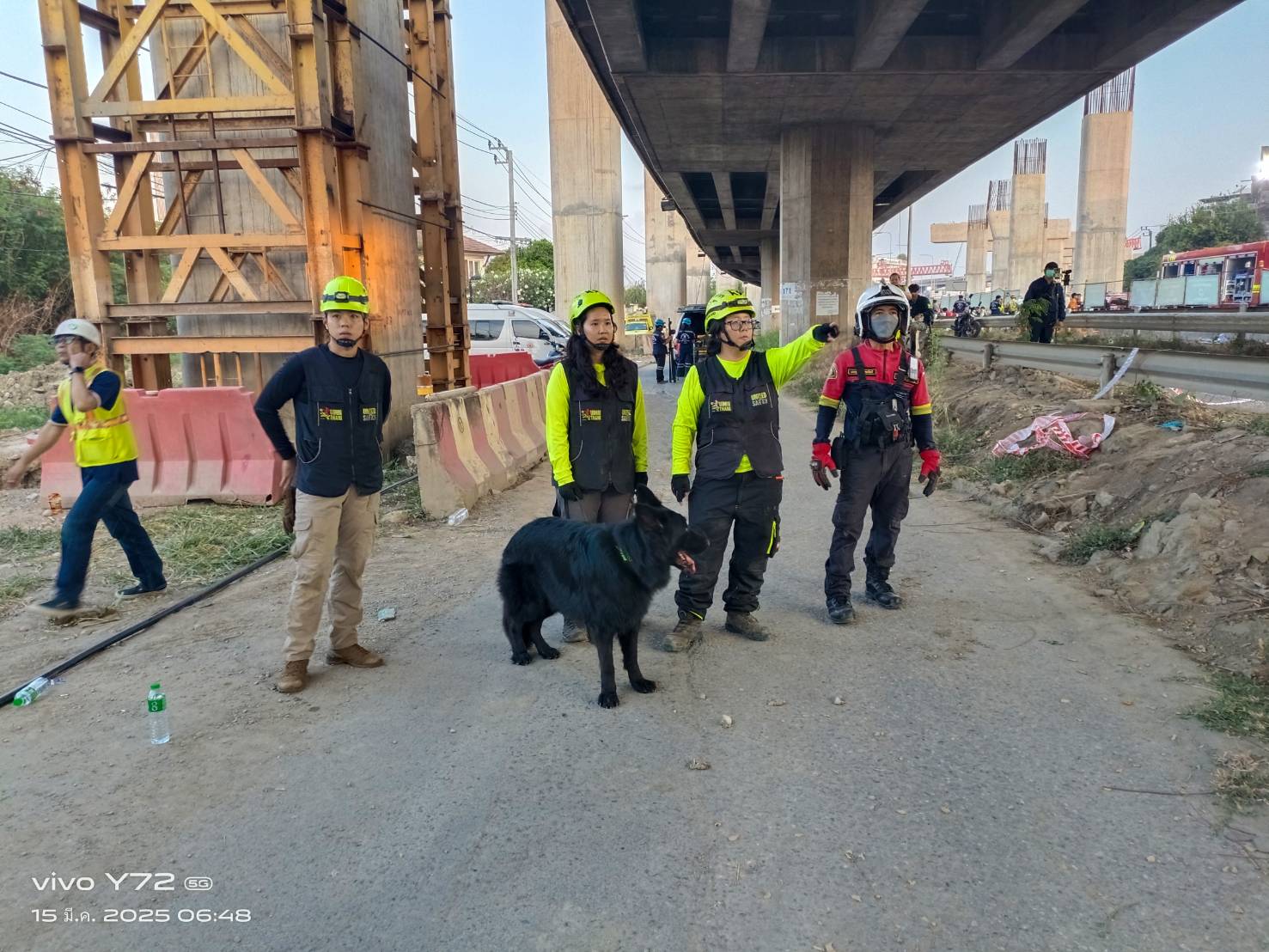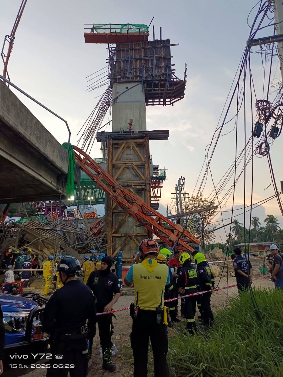 เมื่อเวลา 01.48 น. (15 มี.ค.68) ได้รับรายงานจากสายด่วน 199 ว่า เกิดเหตุสะพานอยู่ระหว่างการก่อสร้างโครงการทางด่วนทรุดตัว บริเวณใกล้เคียงซอยพระรามที่ 2 ซอย 25 ถนนพระรามที่ 2 แขวงบางมด เขตจอมทอง กทม. เจ้าหน้าที่สถานีดับเพลิงและกู้ภัยจอมทอง กำลังไปตรวจสอบที่เกิดเหตุ