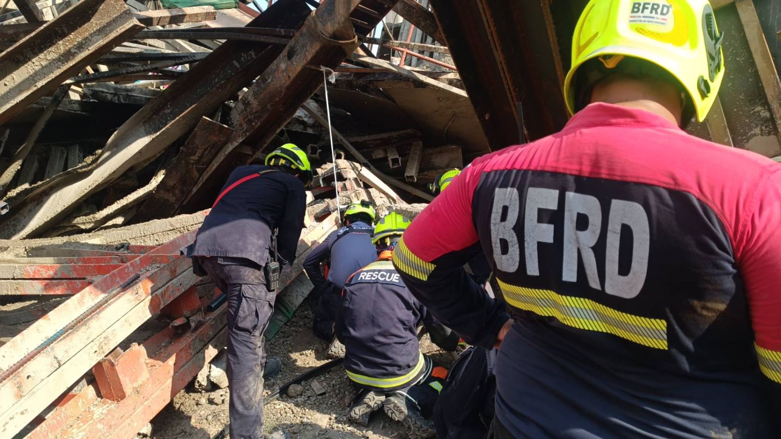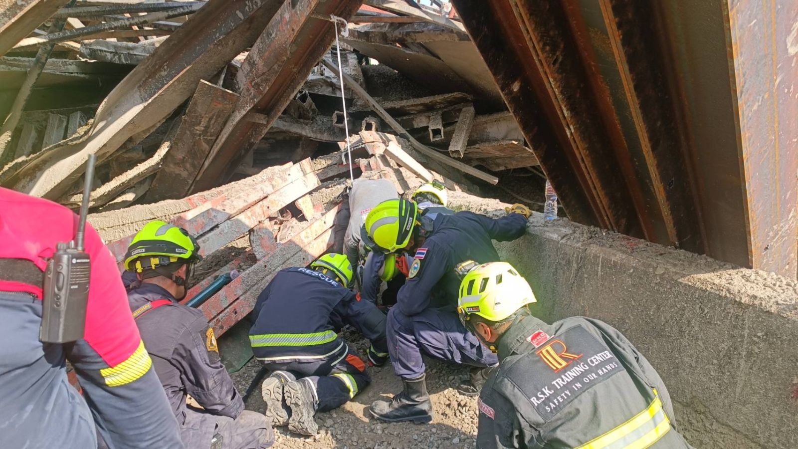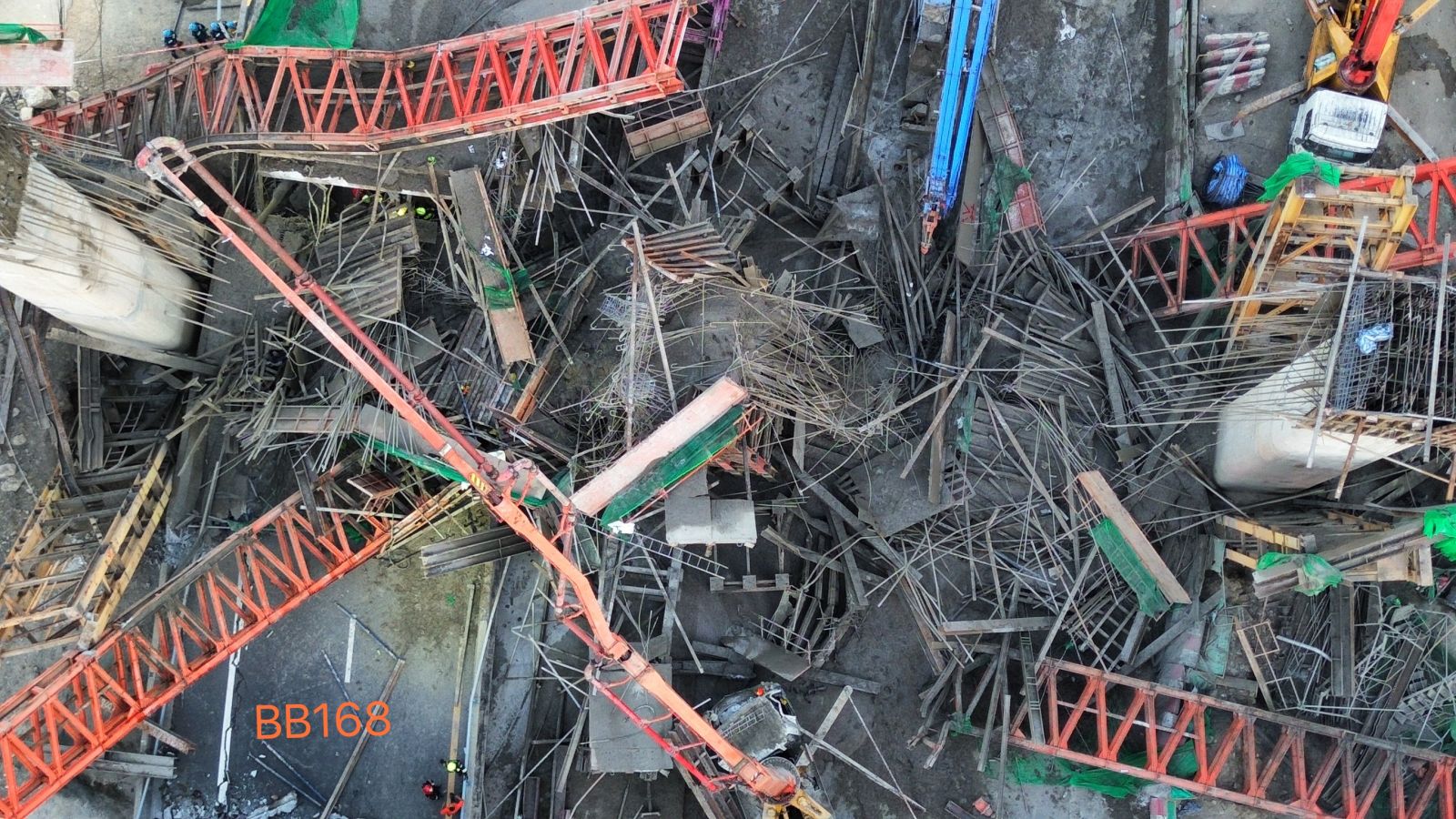 โดยถล่มลงมาทับคนงาน มีผู้เสียชีวิตหลายราย และยังคงมีผู้บาดเจ็บติดค้างอยู่ภายในซากโครงเหล็กอีกหลายรายด้วย