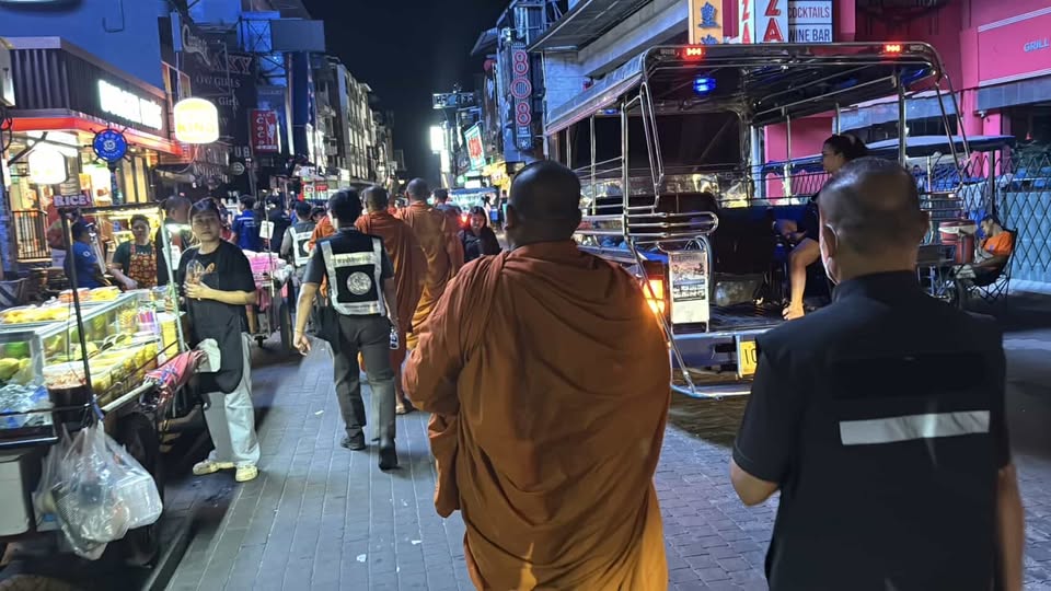วันนี้ (19 มี.ค.68) เวลาประมาณ 04.30 น พระครูพิศาลจริยากร เจ้าอาวาสวัดธรรมสามัคคี ในฐานะเจ้าคณะตำบลนาเกลือ สั่งการให้ พระครูสมุห์ จรูญเกียรติ ถิรจิโต เลขานุการเจ้าคณะตำบลนาเกลือ (ตำรวจพระ) พร้อมคณะสงฆ์อำเภอบางละมุง ฝ่ายปกครองบางละมุง ตร.สภ.เมืองพัทยา เจ้าหน้าที่เทศกิจเมืองพัทยา กำลังอาสาสมัครกว่า 20 นาย ออกตรวจสอบพระนอกรีต บิณฑบาตตามสถานบันเทิงในเมืองพัทยา หลังมีข่าวออกไปว่า มีพระบิณฑบาตขอแต่เงินกลาง walking Street พัทยา