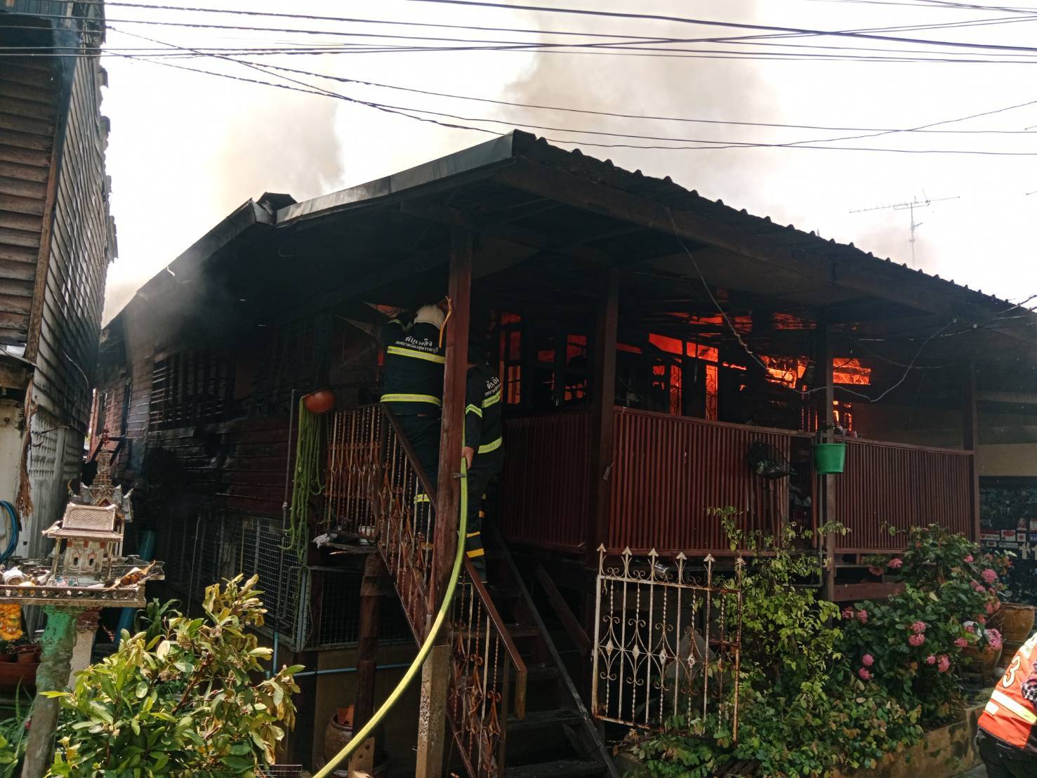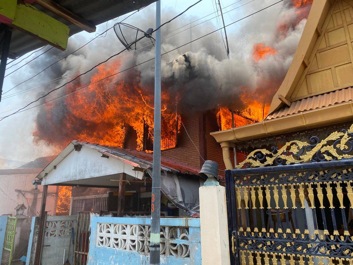 เบื้องต้น พบเพลิงไหม้บ้านจำนวน 3 หลังอยู่ติดกัน เสียหายหมดทั้งหลัง ไม่พบผู้บาดเจ็บและเสียชีวิต