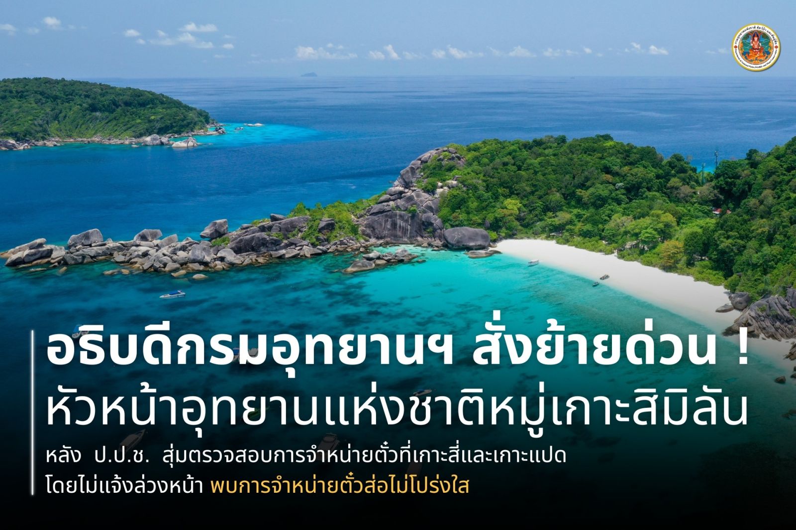 26 มี.ค.2568 อธิบดีกรมอุทยานฯ สั่งย้ายด่วน หัวหน้าอุทยานแห่งชาติหมู่เกาะสิมิลัน หลัง ป.ป.ช. สุ่มตรวจสอบการจำหน่ายตั๋วที่เกาะสี่และเกาะแปด โดยไม่แจ้งล่วงหน้า พบการจำหน่ายตั๋วส่อไม่โปร่งใส
