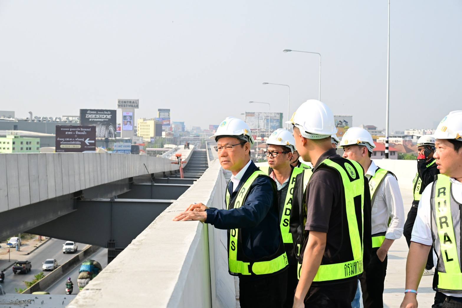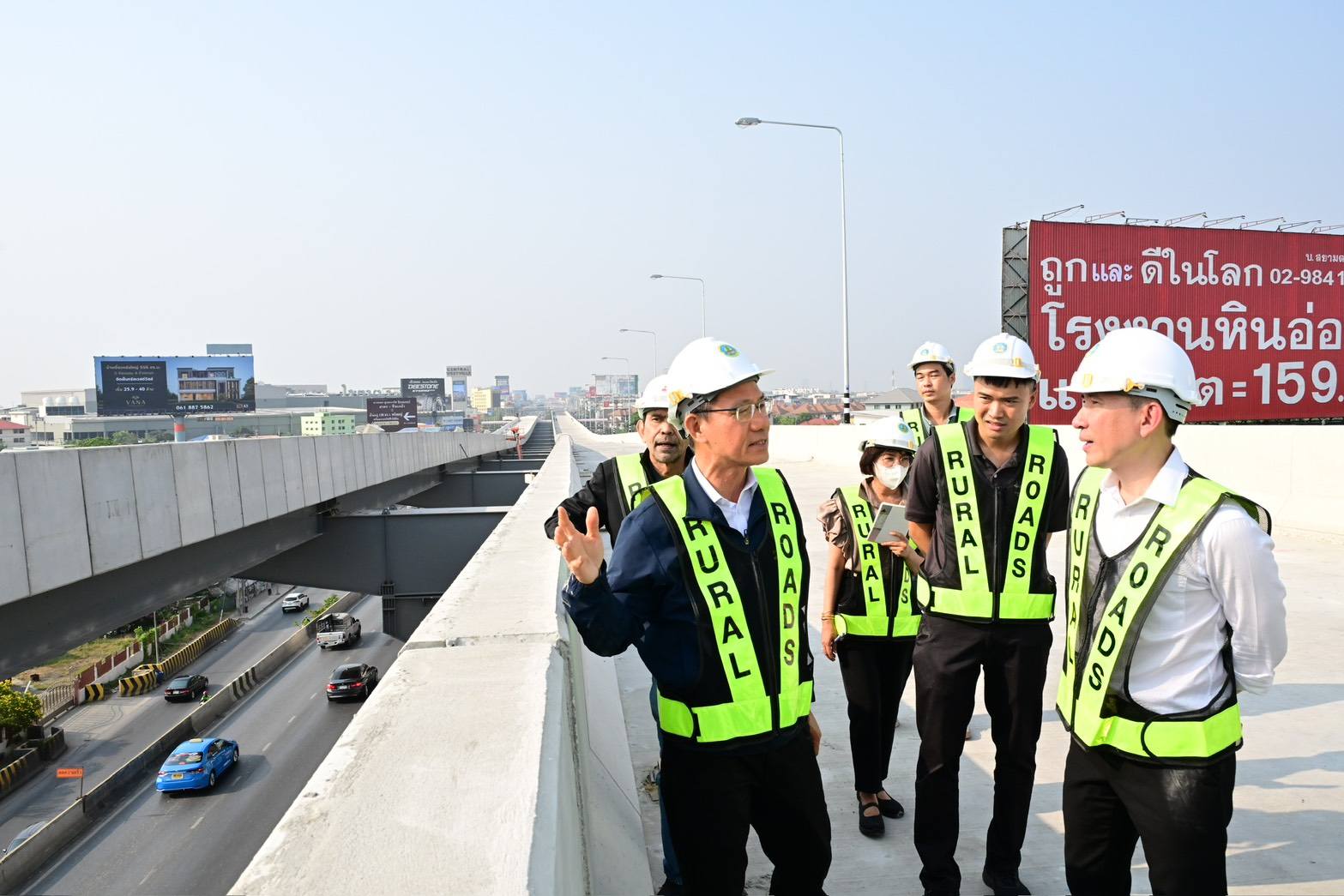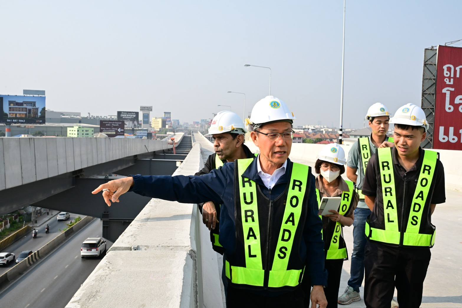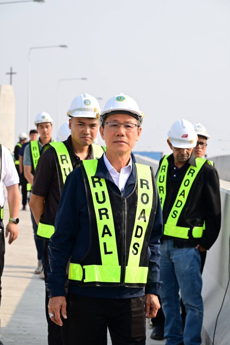 สำหรับการลงพื้นที่ในครั้งนี้ อธิบดีกรมทางหลวงชนบท ได้ตรวจความพร้อมในการเตรียมเปิดใช้งานช่วงเดือนพฤษภาคม 2568 โดยระหว่างการก่อสร้างในส่วนที่เหลือได้กำชับให้คำนึงถึงความปลอดภัยเป็นสำคัญ ทั้งความปลอดภัยของประชาชนผู้ใช้เส้นทางและเจ้าหน้าที่ผู้ปฏิบัติงาน ป้องกันอุบัติเหตุและผลกระทบต่าง ๆ ที่อาจเกิดขึ้นได้ เพื่อให้การปฏิบัติงานเป็นไปด้วยความเรียบร้อย รวมทั้งได้เน้นย้ำในเรื่องการติดตั้งอุปกรณ์อำนวยความปลอดภัยบนสายทาง โดยเฉพาะการติดตั้งป้ายจำกัดความเร็ว เพื่ออำนวยความปลอดภัยให้กับประชาชนผู้ใช้ทาง หลังโครงการดังกล่าวเปิดใช้งานอย่างเต็มรูปแบบ นอกจากนี้ อธิบดีฯ ได้ขอความร่วมมือผู้รับจ้างให้หยุดก่อสร้างในช่วงเทศกาลสงกรานต์นี้ เป็นการอำนวยความสะดวกปลอดภัยในการเดินทางของประชาชน ควบคู่ไปกับการบริหารจัดการเรื่องฝุ่น PM2.5 ทั้งการหมั่นฉีดพรมน้ำ ทำความสะอาดล้อรถที่เข้า – ออกพื้นที่โครงการ และปิดคลุมวัสดุก่อสร้างให้เรียบร้อย