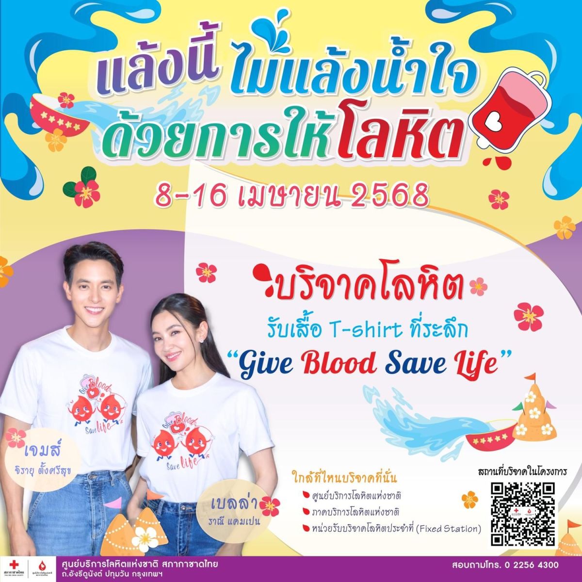 ตอกย้ำความจิ้น ฟินโดนใจเอฟซี “จิราณี” เตรียมต้อนรับผลงานละครฟอร์มดีภายในปีนี้กับ “เจ้าคุณพี่กับอีนางคำดวง” งานนี้ เจมส์ จิรายุ เลยขอเดินหน้าควง เบลล่า ราณี พร้อมทีมนักแสดงในเรื่อง ไอซ์ ภาณุวัฒน์, แพร์ พิชชาภา, เดี่ยว สุริยนต์, บอล กัมมัญญ์ และแบม สราลี เป็นตัวแทนช่อง 3 นัดสวมเสื้อ Give Blood Save Life ออกมาเชิญชวนแฟนๆ รวมทั้งdonor และประชาชนทั่วไป ร่วมกิจกรรมดีๆ ต้อนรับเทศกาลสงกรานต์ สาดความสุข ส่งต่อโลหิตให้กับผู้ป่วยในโครงการ “แล้งนี้ ไม่แล้งน้ำใจ ด้วยการให้โลหิต” ระหว่างวันที่ 8 - 16 เมษายน 2568 นี้ พร้อมรับเสื้อ T-shirt ที่ระลึกสุดพิเศษ ไปใส่เที่ยวช่วงเทศกาลเหมือนกับทีมนักแสดงกันอีกด้วย