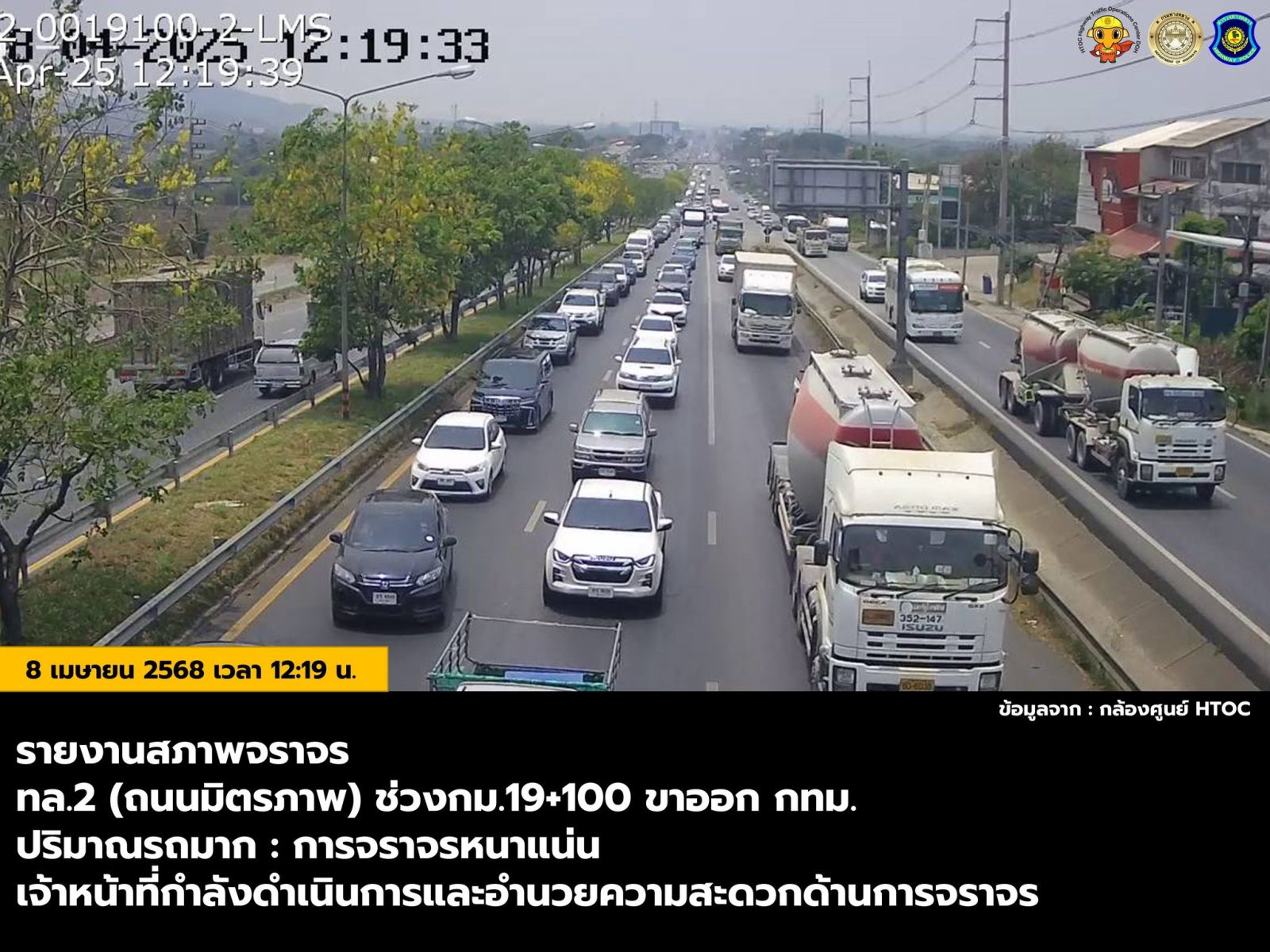 8 เม.ย.68 เวลา 12.10 น. อาสาจราจรตำรวจทางหลวงสระบุรี รายงานการจราจร ถนนมิตรภาพ มุ่งหน้านครราชสีมา ช่วงโรงปูน แก่งคอย รถหนาแน่น เคลื่อนตัวช้า