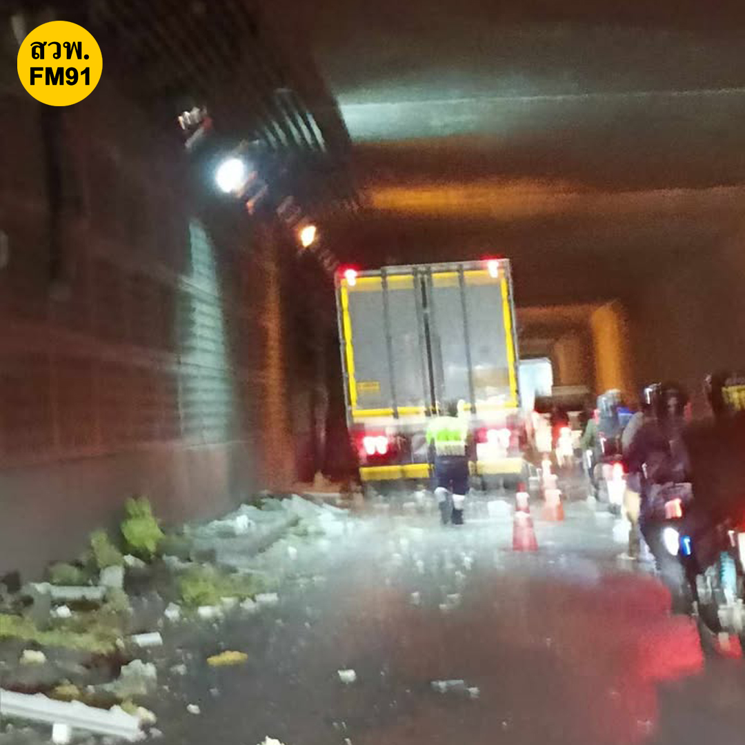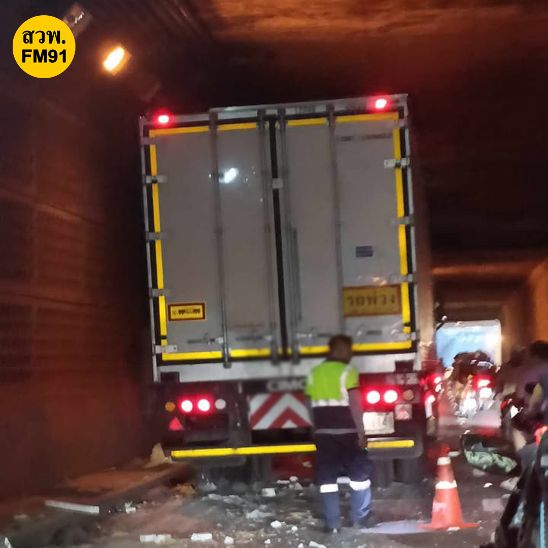 8 เม.ย. 68 เวลา 18.30 น. ถ.ศรีนครินทร์ ขาเข้า รถบรรทุกพ่วงติดภายในอุโมงค์ศรีอุดม กีดขวางเลนซ้าย