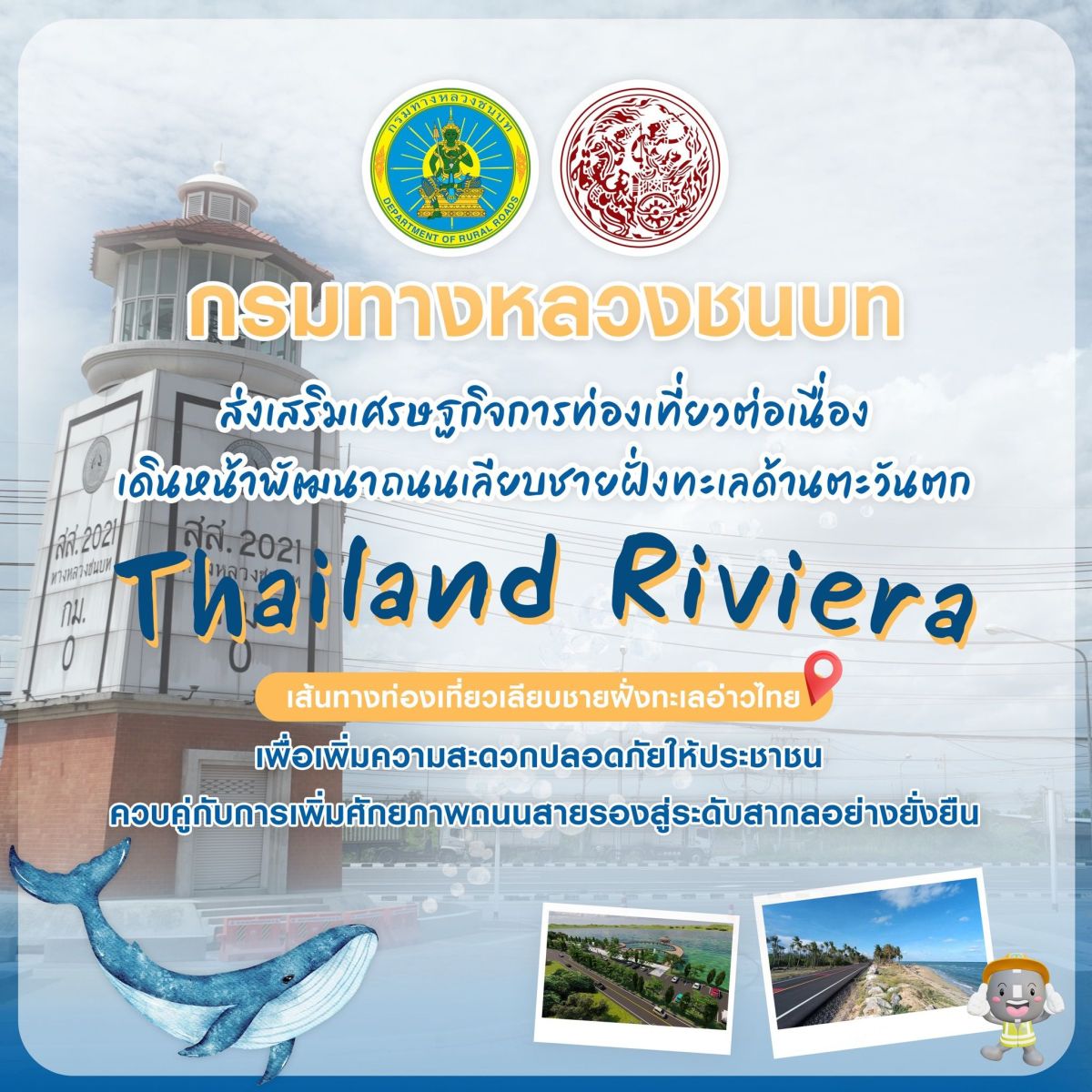 กรมทางหลวงชนบท ส่งเสริมเศรษฐกิจการท่องเที่ยวต่อเนื่อง เดินหน้าพัฒนาถนนเลียบชายฝั่งทะเลด้านตะวันตก Thailand Riviera เพื่อเพิ่มความสะดวกปลอดภัยให้ประชาชน ควบคู่กับการเพิ่มศักยภาพถนนสายรองสู่ระดับสากลอย่างยั่งยืน