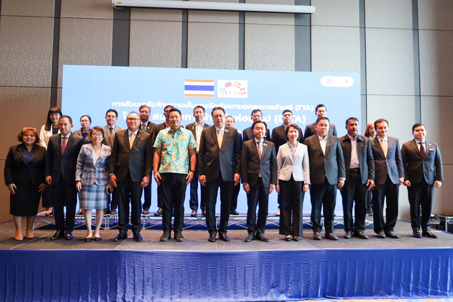 วันที่ 10 เมษายน 2568 นายสุชาติ ชมกลิ่น รัฐมนตรีช่วยว่าการกระทรวงพาณิชย์ เป็นประธานเปิดการสัมมนารับฟังความเห็นการจัดทำความตกลงการค้าเสรี ไทย-สมาคมการค้าเสรีแห่งยุโรป (เอฟตา) เพื่อรับฟังความเห็นต่อผลการเจรจาเอฟทีเอ ไทย – เอฟตา ณ โรงแรมโนโวเทล มารินา ศรีราชา จังหวัดชลบุรี หลังจากที่ไทย และ เอฟตา ได้ร่วมลงนามความตกลงการค้าเสรีระหว่างกัน เมื่อเดือนมกราคม 2568 ณ เมืองดาวอส สวิตเซอร์แลนด์