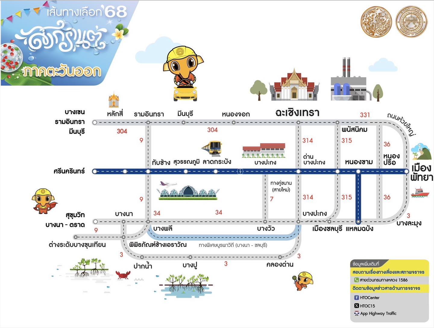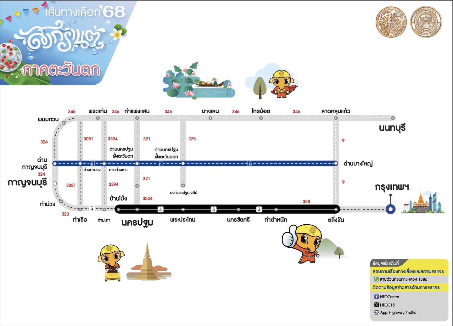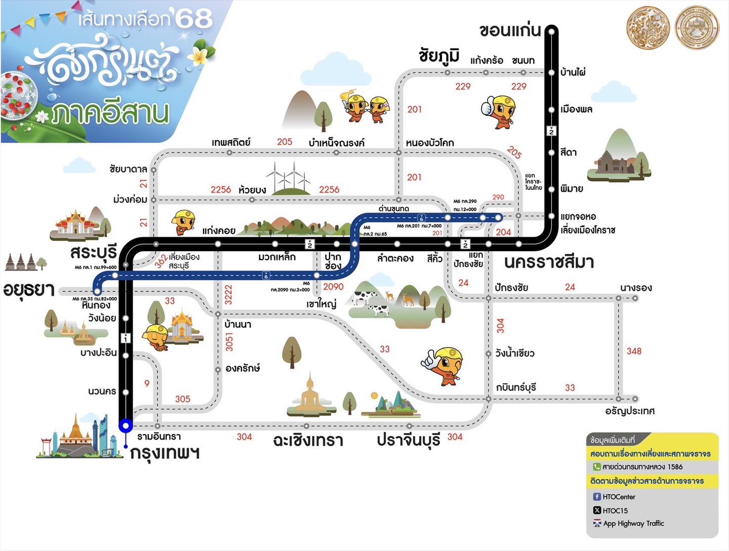 หากประชาชนต้องการสอบถามข้อมูลการเดินทางเพิ่มเติมหรือแจ้งเหตุด่วนเหตุร้ายระหว่างเดินทาง สามารถติดต่อได้ที่ สายด่วนกรมทางหลวง 1586 (โทรฟรีทุกเครือข่ายตลอด 24 ชั่วโมง) สายด่วนมอเตอร์เวย์ 1586 กด 7 และตำรวจทางหลวง 1193
