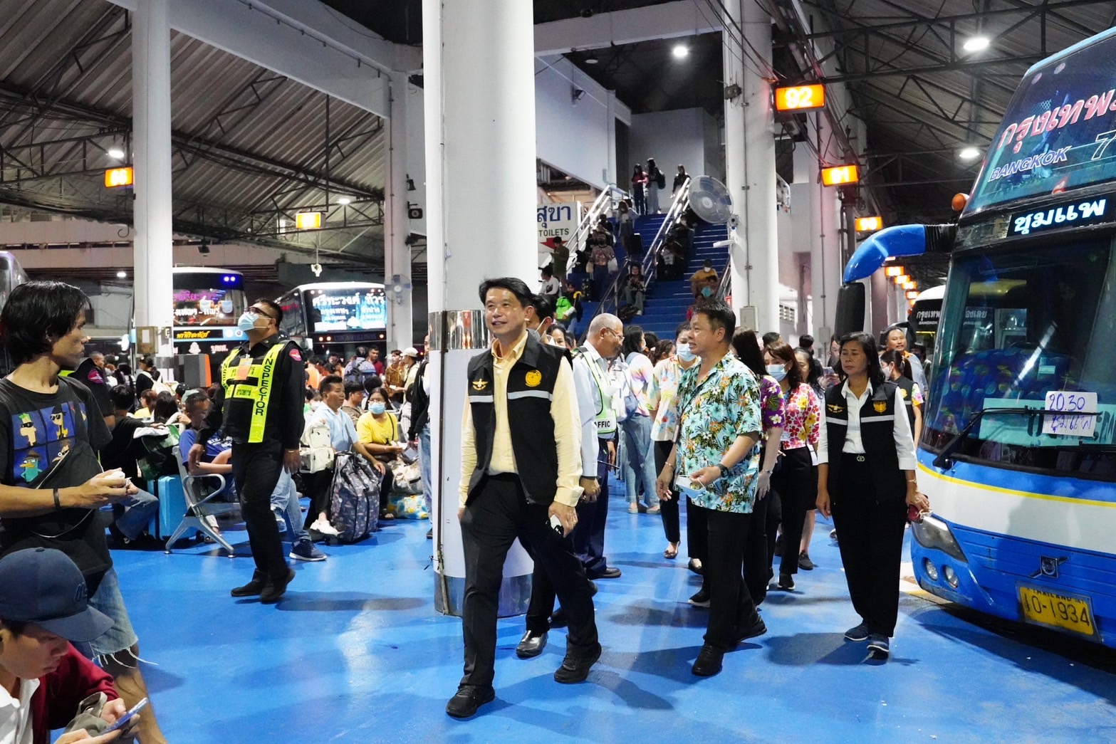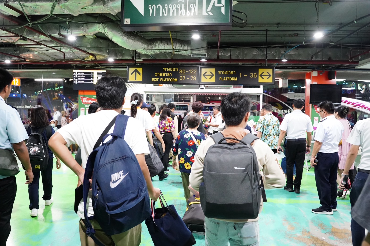 สำหรับข้อมูลการเดินรถเมื่อวานนี้ (10 เมษายน 2568) มีผู้โดยสารเดินทางออกจากกรุงเทพฯ เที่ยวไป จำนวน 77,759 คน เที่ยวกลับ จำนวน 45,538 คน รวมทั้งสิ้น 123,297 คน ใช้รถโดยสาร (รถ บขส., รถร่วม, รถตู้) เที่ยวไป จำนวน 3,537 เที่ยว เที่ยวกลับ จำนวน 3,091 เที่ยว รวมทั้งสิ้น 6,628 เที่ยว ซึ่ง บขส. สามารถบริหารจัดการเดินรถได้อย่างเพียงพอ ไม่มีผู้โดยสารตกค้าง รถโดยสารเที่ยวสุดท้ายออกจากสถานีขนส่งผู้โดยสารกรุงเทพ (จตุจักร) หรือหมอชิต 2 เวลาประมาณ 23.00 น. และเที่ยวสุดท้ายออกจากสถานีกลางกรุงเทพอภิวัฒน์ ในเวลา 21.50 น.