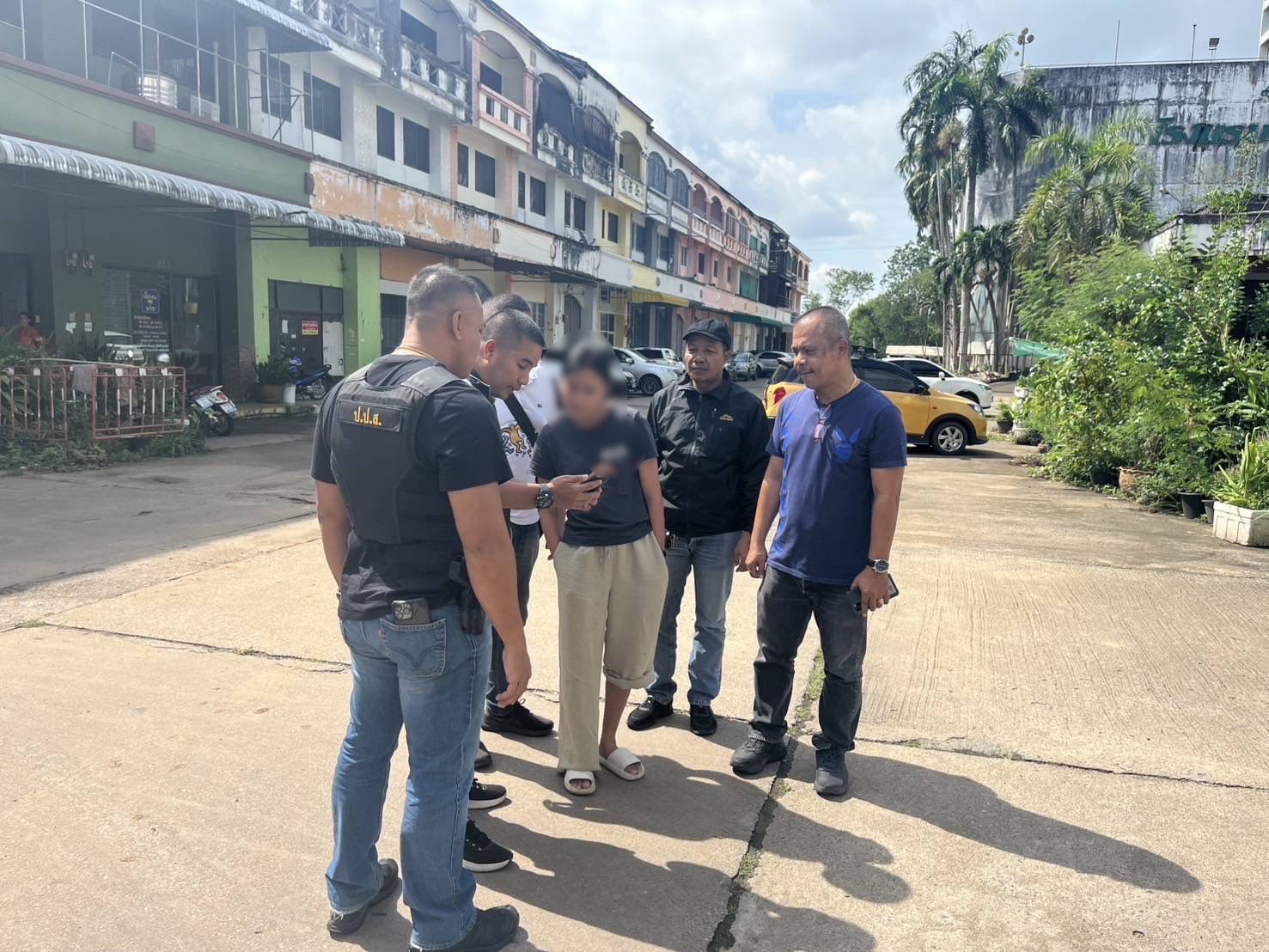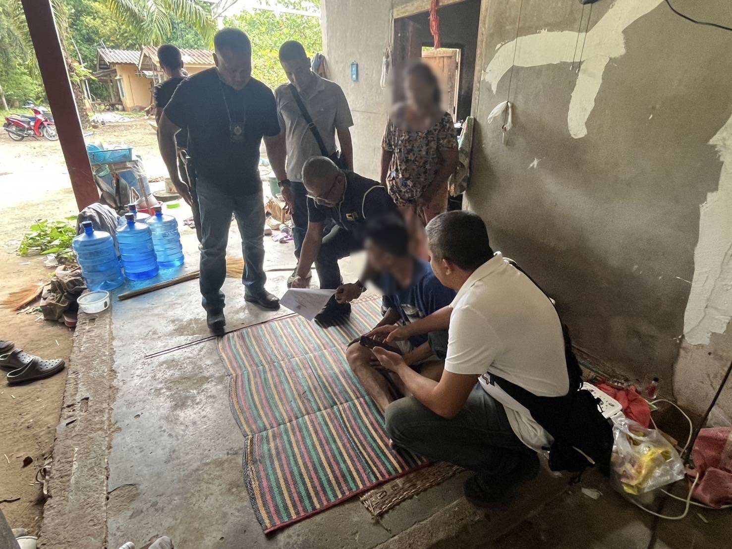 สถานที่จับกุม หน้าบ้านหลังหนึ่ง หมู่ 8 ต.หนองตรุด อ.เมืองตรัง จ.ตรัง