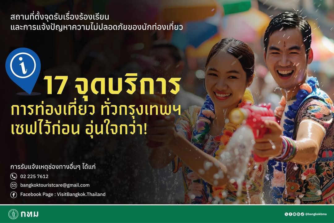 กรุงเทพมหานครจัดตั้ง จุดรับเรื่องร้องเรียนและแจ้งปัญหาความไม่ปลอดภัยของนักท่องเที่ยว ครอบคลุม 17 จุดสำคัญทั่วเมือง เพื่อให้ทุกคนสามารถขอความช่วยเหลือ หรือแจ้งเหตุไม่ปลอดภัยได้อย่างรวดเร็ว