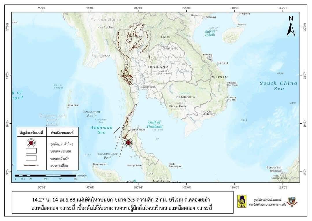 ปภ.รายงานเกิดแผ่นดินไหว ต.คลองเขม้า อ.เหนือคลอง จ.กระบี่ อุตุฯ เผยแผ่นดินไหว ขนาด 3.5 ไม่ส่งผลกระทบต่อโครงสร้างอาคารบ้านเรือนประชาชน
