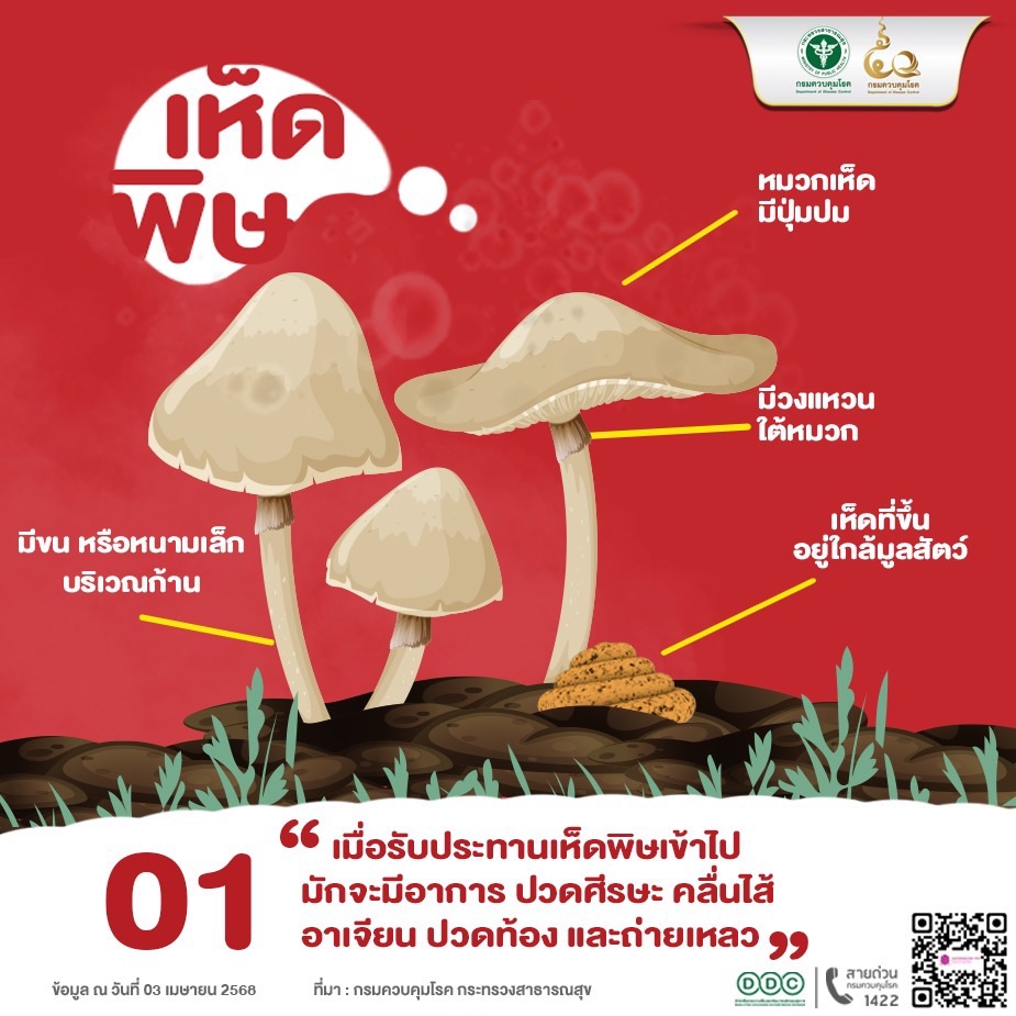 วันที่ 15 เมษายน 2568 นายคารม พลพรกลาง รองโฆษกประจำสำนักนายกรัฐมนตรี เปิดเผยว่า จากสภาพอากาศที่เริ่มมีฝนตกในหลายพื้นที่ ส่งผลให้มี เห็ดป่า หรือ เห็ดที่ขึ้นเองตามธรรมชาติ ทั้งที่กินได้และเป็นเห็ดพิษ โดยเฉพาะเห็ดในระยะดอกตูม ซึ่งมักมีลักษณะคล้ายกันจนไม่สามารถแยกได้ด้วยตาเปล่าได้ หากไม่มีความรู้หรือความชำนาญอาจทำให้เข้าใจผิดและนำเห็ดพิษมาประกอบอาหารจนเกิดการเจ็บป่วยและเสียชีวิตได้