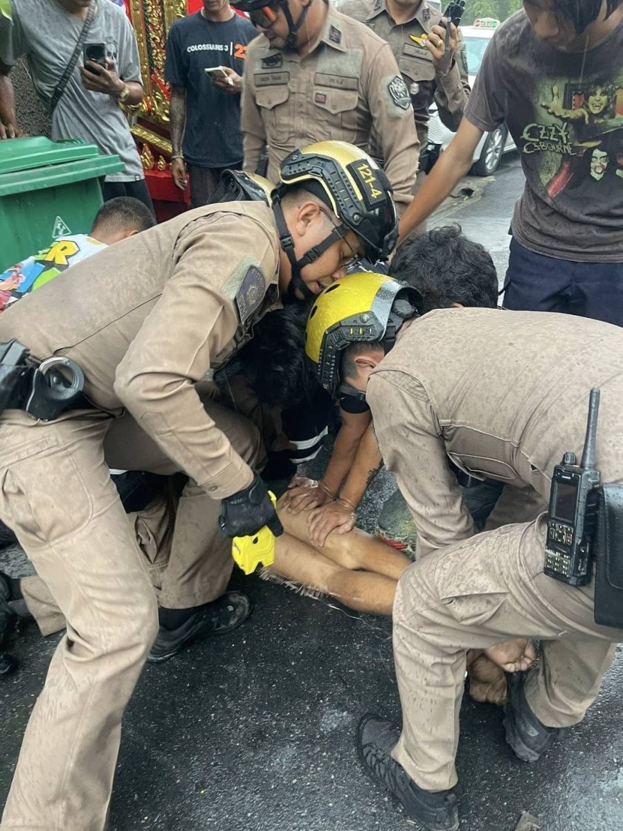 สายตรวจสน.ลาดพร้าวจึงได้ใช้ ยุทธวิธีเข้าจับกุมโดยใช้ไม้ง่าม แต่เนื่องจากผู้ก่อเหตุได้ปีนกำแพงหลบหนี จะเข้าบ้านเรือนประชาชน และยังจะใช้ท่อนเหล็กพยายามทำร้ายเจ้าหน้าที่ เจ้าหน้าที่ชุดจับกุม จึงจำเป็นต้องใช้ปืนไฟฟ้า (Taser) เข้าทำการจับกุม เพื่อยับยั้ง ผู้ก่อเหตุ โดยได้ใช้อาวุธปืนไฟฟ้า (Taser) ยิงไปจำนวน 1 นัด โดนบริเวณเอวและขาซ้าย เจ้าหน้าที่ สามารถควบคุมตัวไว้ได้บริเวณลานจอดรถวัดกลาง จึงควบคุมตัวมาที่สนลาดพร้าว