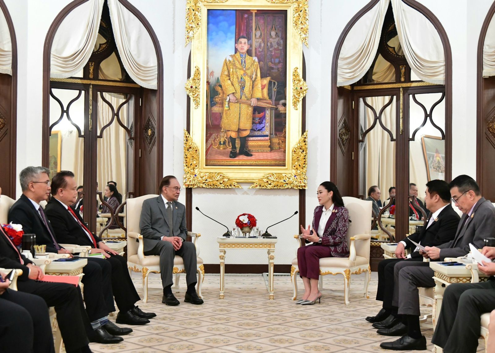 วันที่ 17 เมษายน 2568 เวลา 14.00 น. ณ ห้องสีงาช้าง ทำเนียบรัฐบาล นางสาวแพทองธาร ชินวัตร นายกรัฐมนตรี ให้การต้อนรับดาโตะ เซอรี อันวาร์ อิบราฮิม (Dato’ Seri Anwar Ibrahim) นายกรัฐมนตรีมาเลเซีย ในโอกาสการเยือนประเทศไทยเพื่อการเจรจาทำงาน (Working Visit) และหารือติดตามความคืบหน้าเกี่ยวกับความร่วมมือไทย-มาเลเซีย