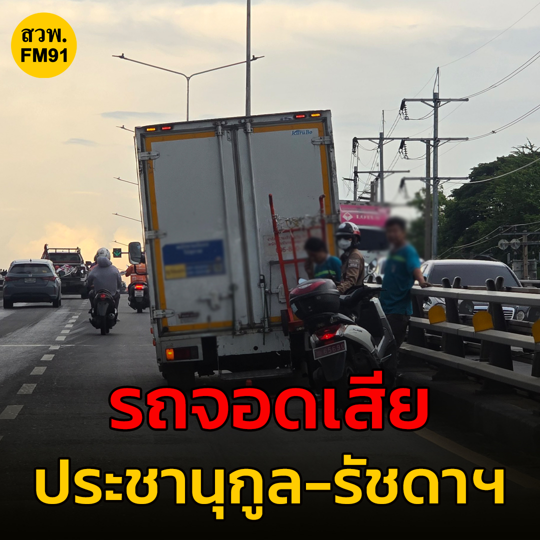 19 เม.ย. 68 เวลา 16.00 น. ถ.รัชดาภิเษก ขาเข้า บนสะพานข้ามแยกประชานุกูล รถกระบะตู้ทึบจอดเสีย กีดขวางเลนขวา ท้ายสะสมไปถึงสะพานพระราม 7 กลับกัน ขาออก จากสะพานข้ามแยกประชานุกูล มุ่งหน้า วงศ์สว่าง -สะพานพระราม 7 ไม่มีปัญหา