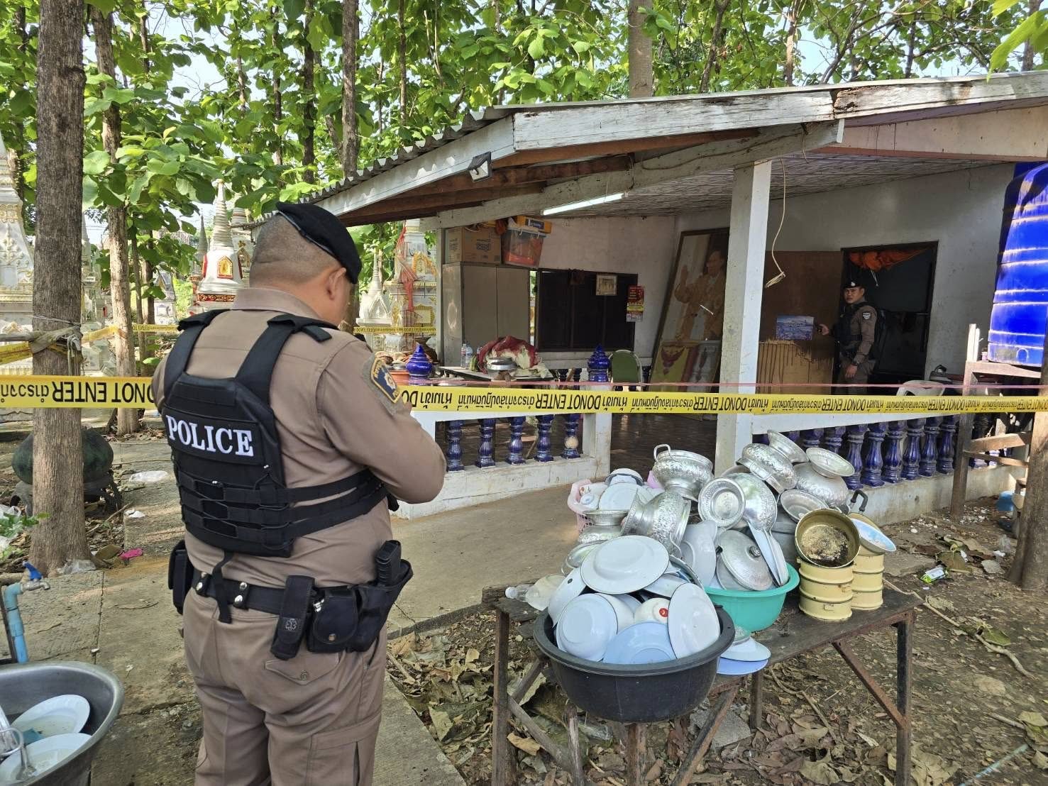 ที่เกิดเหตุภายในกุฏิพบพระอายุ 70 ปี เป็นพระลูกวัด นอนอยู่บนที่นอน มีร่องรอยถูกไฟไหม้ตามลำตัวมากกว่า 50 เปอร์เซ็นต์ ตรวจสอบอย่างละเอียดพบว่าตามใบหน้า ,ลำตัว และแขนมีร่องรอยของมีคม หน่วยกู้ชีพรีบนำตัวส่งโรงพยาบาลเพราะอาการสาหัส ส่วนผู้ก่อเหตุคาดเป็นสาวสอง คนในหมู่บ้าน เพราะได้หลบหนีออกจากบ้าน
