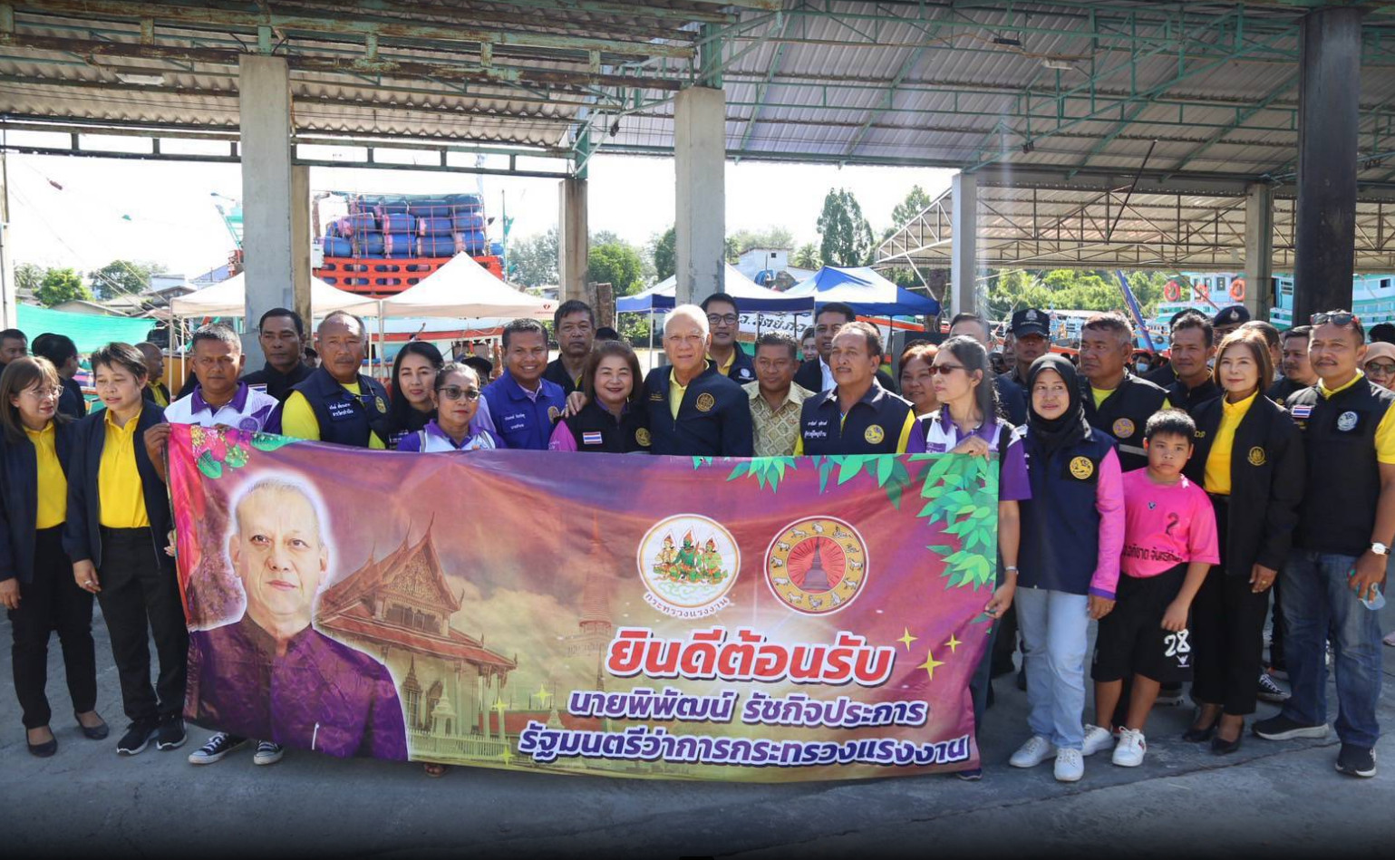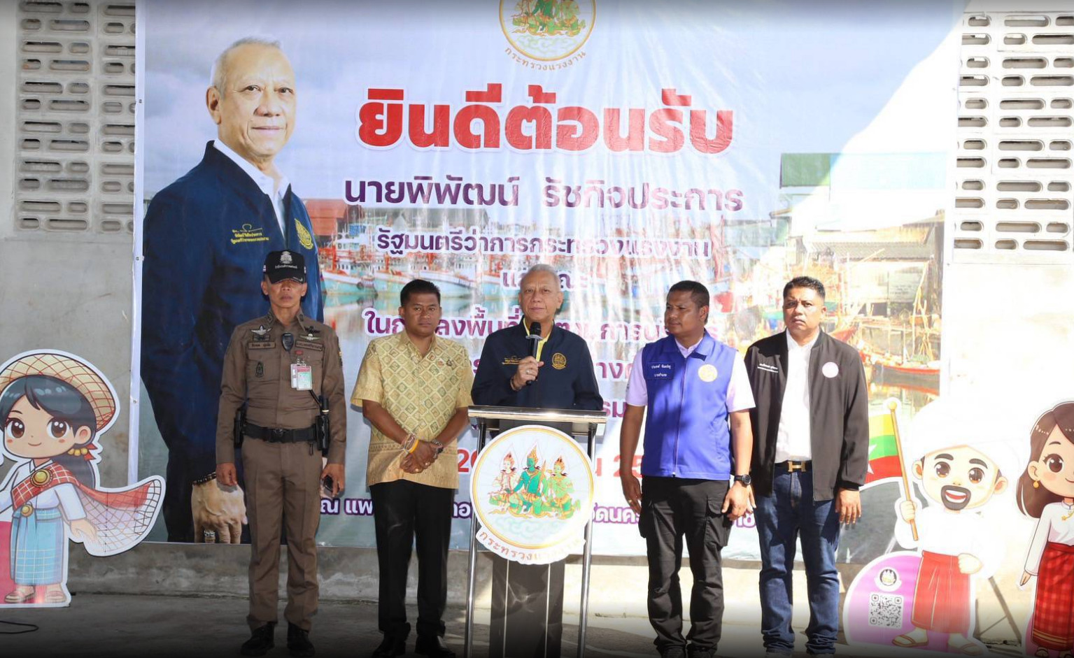 วันที่ 20 เมษายน 2568 นายพิพัฒน์ รัชกิจประการ รัฐมนตรีว่าการกระทรวงแรงงาน ลงพื้นที่พบปะแรงงานต่างด้าวที่ปฏิบัติงานบริเวณหน้าท่า เพื่อแนะแนวการปฏิบัติตามกฎหมายที่เกี่ยวข้องในการบริหารจัดการแรงงานต่างด้าวจังหวัดนครศรีธรรมราชตามนโยบายรัฐบาล พร้อมเยี่ยมชมบูธหน่วยงานสังกัดกระทรวงแรงงานจังหวัดนครศรีธรรมราช โดยมี นายภุชงค์ วรศรี ประจำสำนักเลขาธิการนายกรัฐมนตรี ปฏิบัติหน้าที่ประจำกระทรวงแรงงาน นาวาอากาศเอก อธิคุณ คงมี คณะทำงานรัฐมนตรีด้านการบริหารจัดการแรงงานผิดกฎหมาย นายภูมิพัฒน์ เหมือนจันทร์ โฆษกกระทรวงแรงงาน นายสมชาย มรกตศรีวรรณ อธิบดีกรมการจัดหางาน นายสมชาย ลีหล้าน้อย ผู้ว่าราชการจังหวัดนครศรีธรรมราช กล่าวต้อนรับ