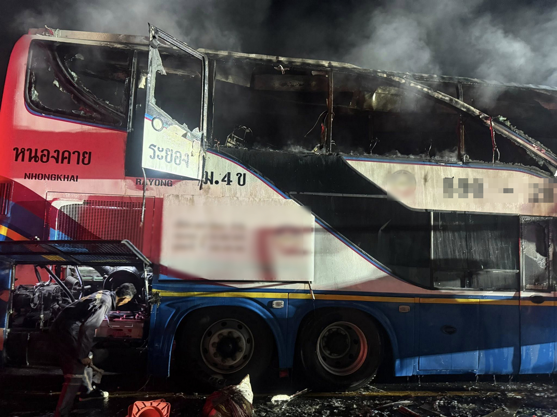 ที่เกิดเหตุ พบรถทัวร์ สายหนองคาย - ระยอง สีฟ้า-ขาว ลักษณะชนกับรถเทรลเลอร์ แล้วเกิดเพลิงไหม้รถทัวร์ และรถเทรลเลอร์ ชนกับรถบรรทุก 10 ล้ออีกคัน ตรวจสอบเบื้องต้น พบว่ามีผู้เสียชีวิตแล้ว 7 ราย ส่วนผู้บาดเจ็บอีกหลายราย กู้ภัยกำลังทำการช่วยเหลือ ในส่วนของยอดผู้บาดเจ็บและเสียชีวิตที่แท้จริงนั้น ยังอยู่ระหว่างตรวจสอบ