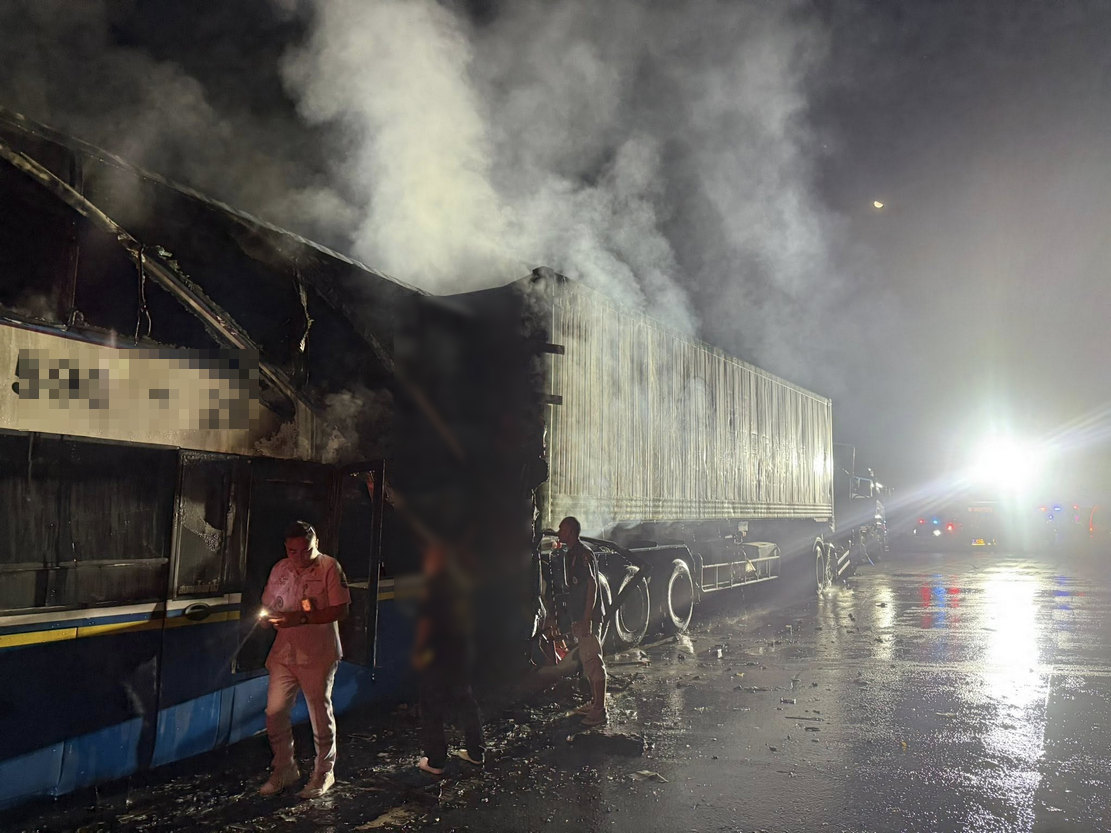 รถทัวร์ ชนกับรถเทรลเลอร์แล้วเกิดเพลิงไหม้ คนขับ-ผู้โดยสารเสียชีวิต 7 ราย บาดเจ็บกว่า 20 ราย ซ้ำรอยอุบัติเหตุ 20 ศพ ช่วง กพ.ที่ผ่านมา