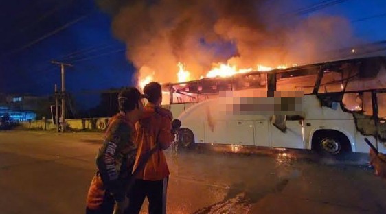คนขับรถบัส บอกว่า ตนเองขับรถบัสมาจอดรอเพื่อรอรับพนักงาน รถตนเองได้ติดเครื่องยนต์ไว้แล้วลงไปเข้าห้องน้ำพอเดินกลับขึ้นมาก็เห็นไฟลุกไหม้ด้านหน้ารถบัสแล้ว จึงได้โทรแจ้งตำรวจขอความช่วยเหลือ โชคดีที่ขณะเกิดเหตุไม่มีพนักงานอยู่บนรถ